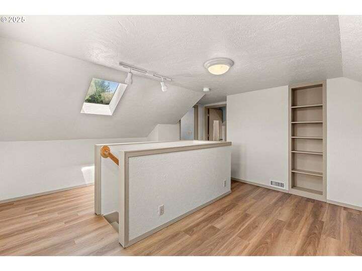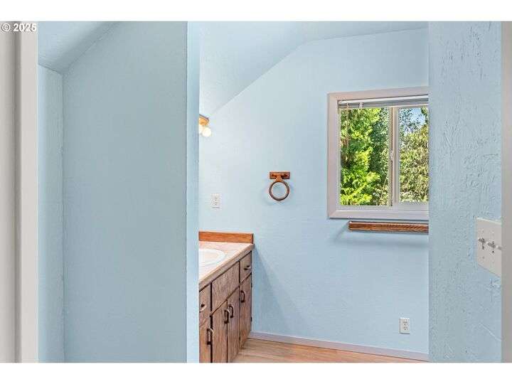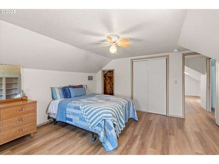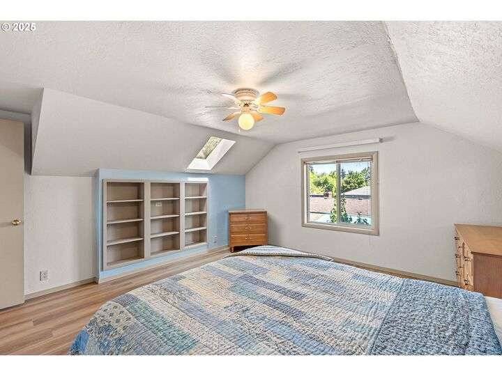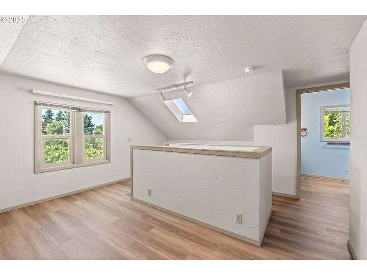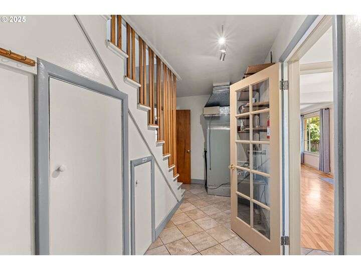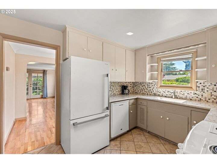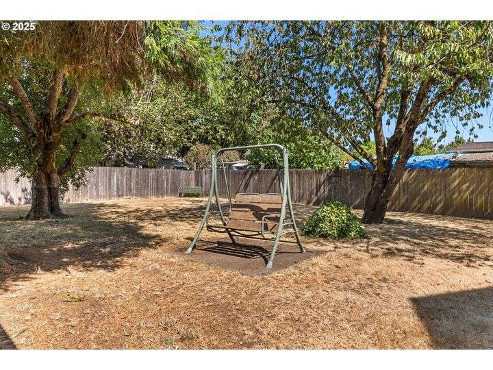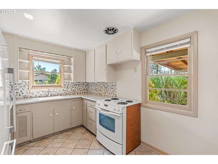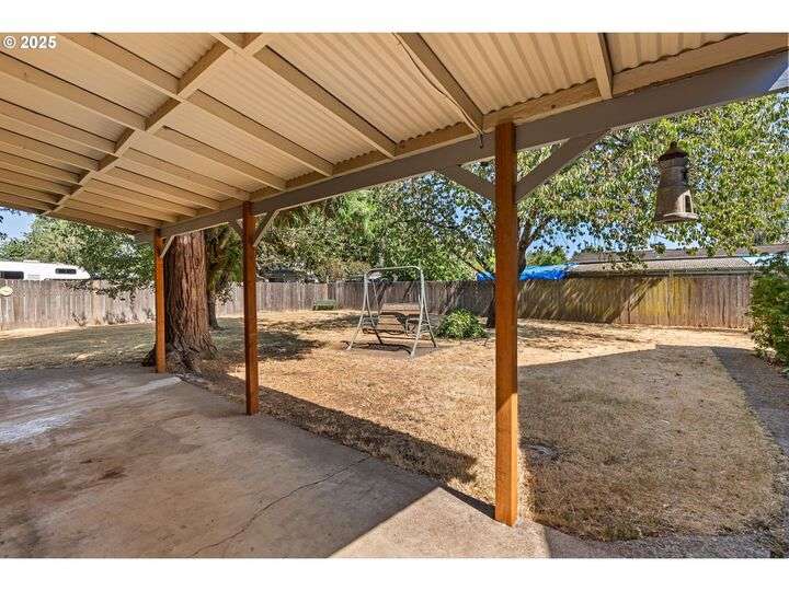 Mid-century Charmer! Freshly painted stucco exterior and interior plaster walls with coved ceilings. Beautiful refinished oak floors throughout the downstairs. New granite kitchen counter, backsplash, sink, and refrigerator. Spacious master suite upstairs with new vinyl plank flooring, versatile office area, and full-bath. Indoor laundry area in mud room. Oversized one-car garage plus carport. Plenty of room for RV parking and gardening on spare lot. Fully fenced backyard with covered patio. Kiwi, grape, wisteria, and rose arbors. Energy efficient heat pump with air. Non-smoking home.
