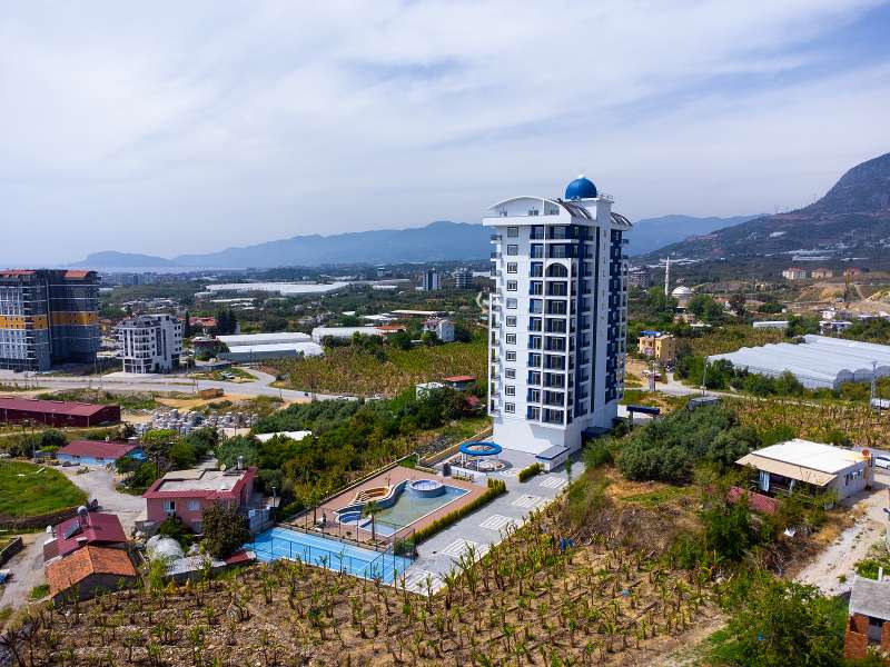 The apartments for sale in Alanya, Antalya are located 400 m from social amenities, 1.5 km from the beach, 900 m from the local bazaar, 12 km from Alanya center, and 27 km from Gazipasa International Airport.