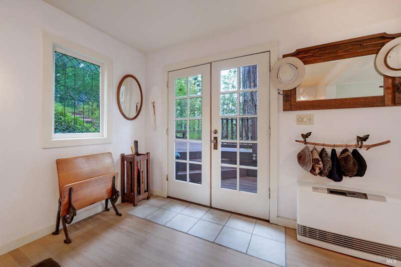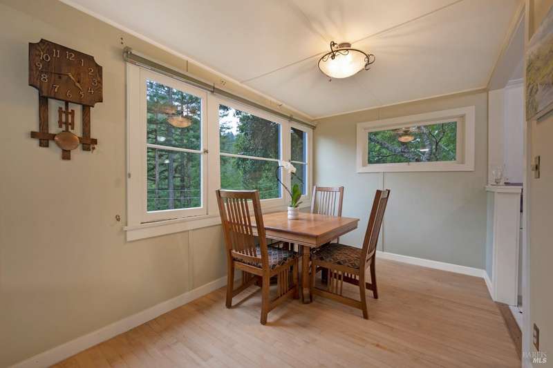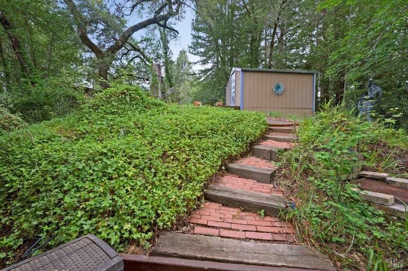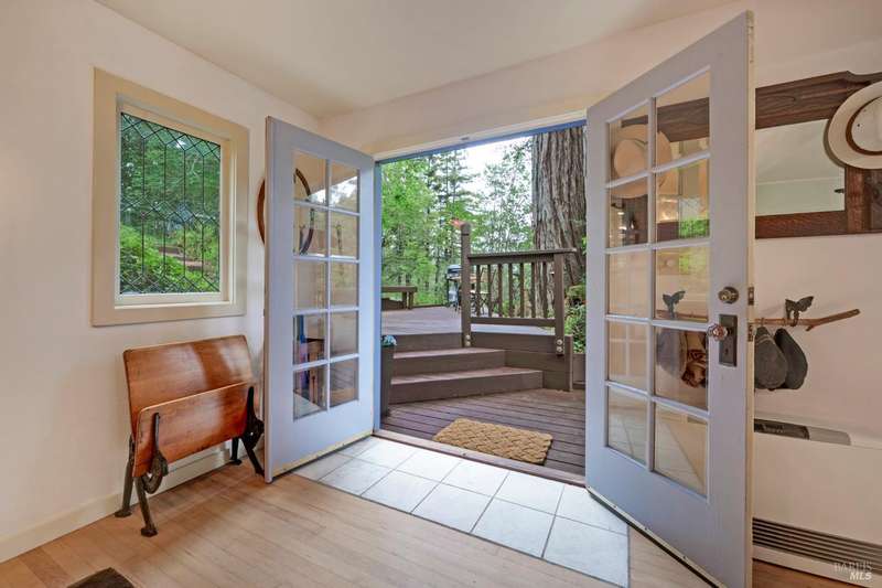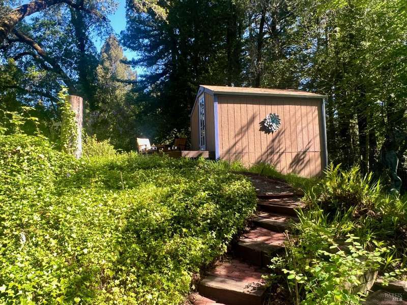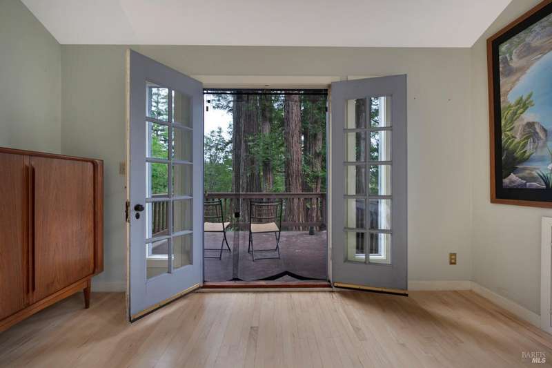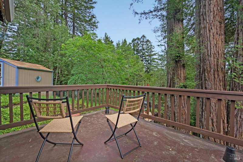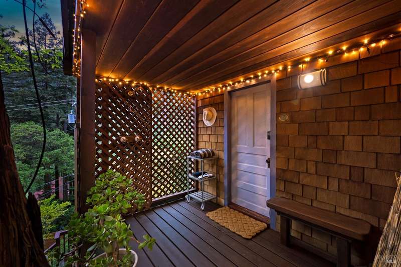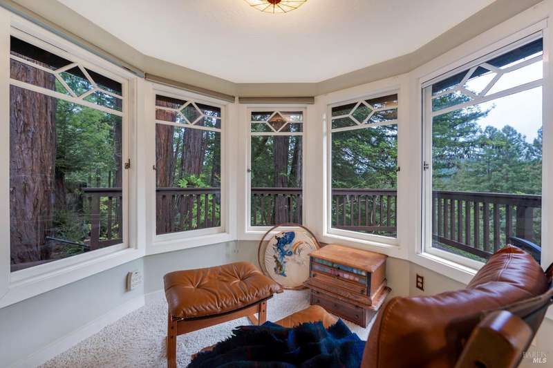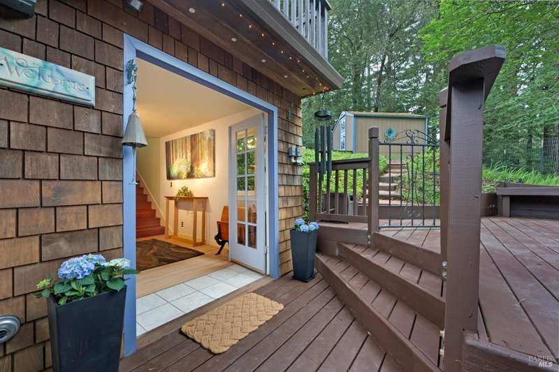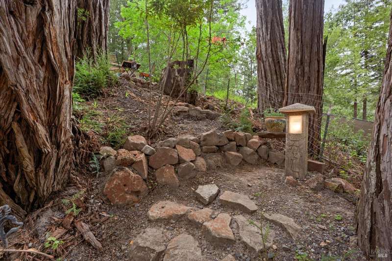 Paradiso del Cielo (Sky Haven) offers a charming vintage home with sun, views and privacy. This heartwarming home is a true sanctuary. Perched high on a hill, the panoramic views of forest ridges and of your own redwood grove will steal your breath away. It's the perfect place to unwind and reconnect with nature. The upper level boasts a magnificent primary bedroom with vaulted ceilings, expansive windows, white oak floors, and a private sun deck for your own personal escape. The kitchen is perfect for culinary creativity. Your guests can retreat to the private lower-level suite, complete with a cozy sleeping cove and an outdoor shower. Enjoy al fresco dining and moments of zen in the detached meditation room of this private oasis. The outdoor spaces are as captivating as the interior. It's much more than a home, it's a lifestyle!