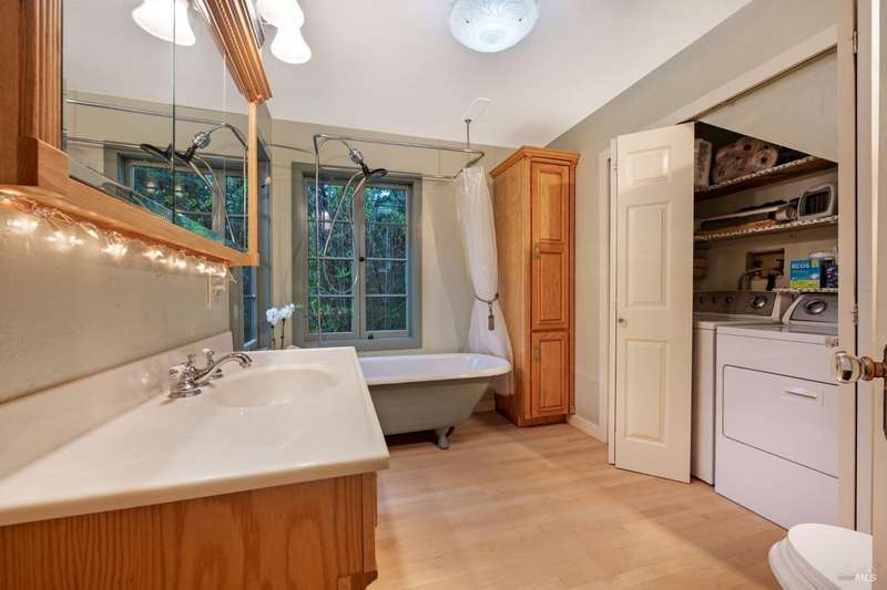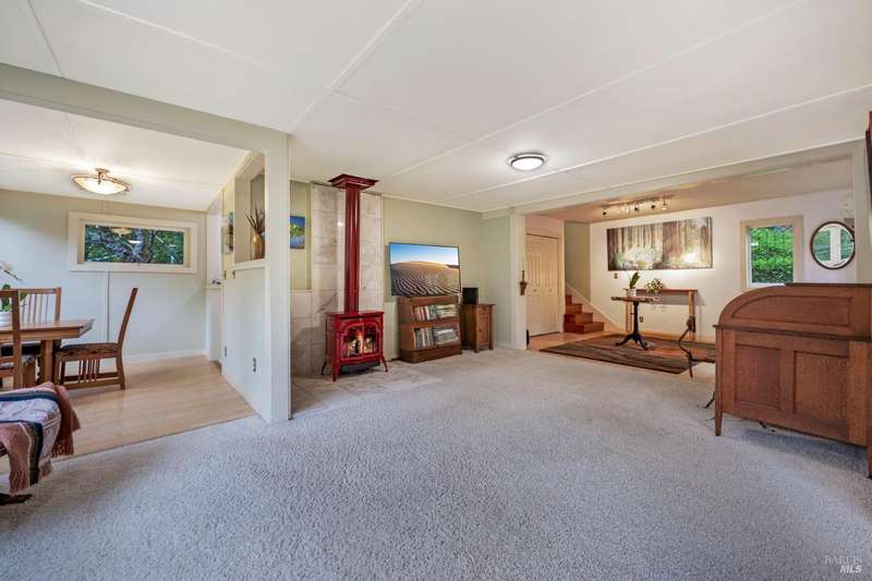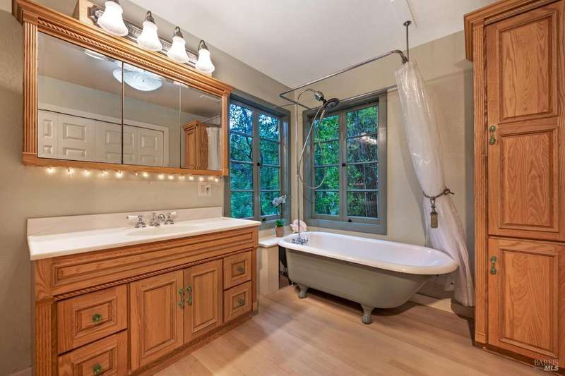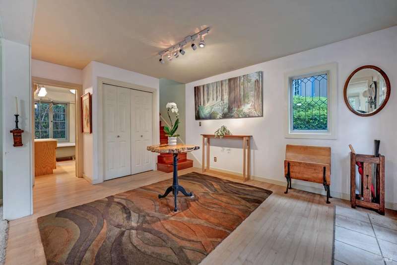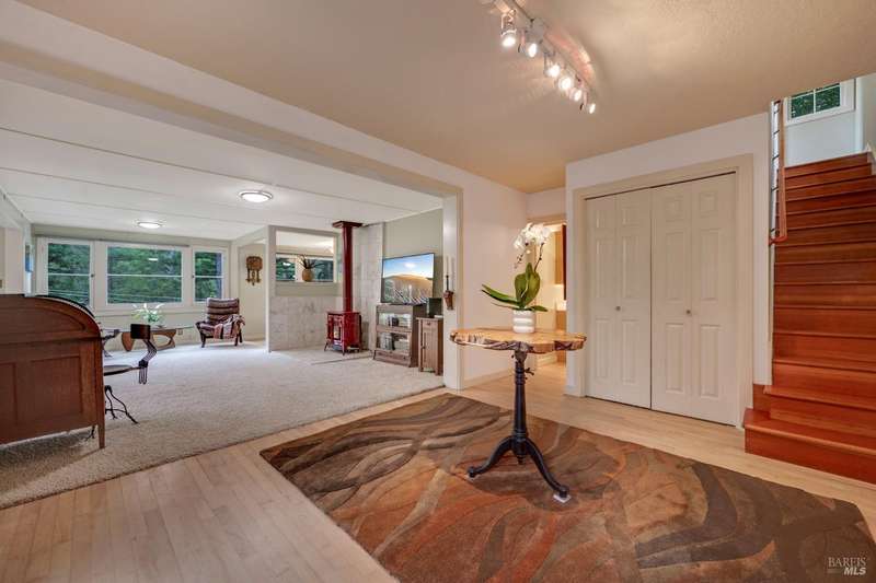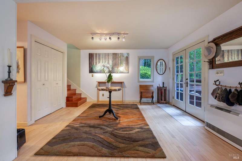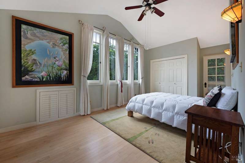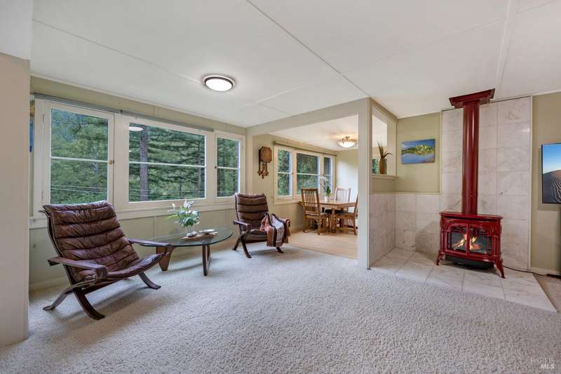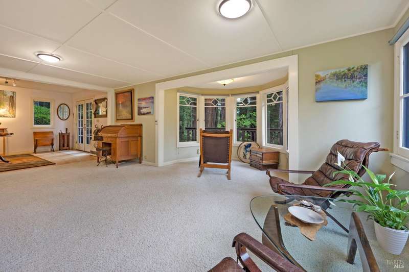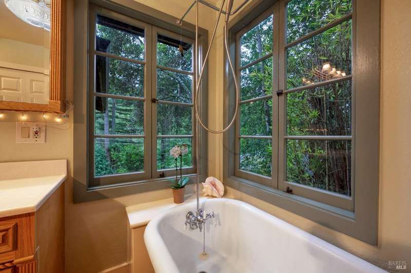 Paradiso del Cielo (Sky Haven) offers a charming vintage home with sun, views and privacy. This heartwarming home is a true sanctuary. Perched high on a hill, the panoramic views of forest ridges and of your own redwood grove will steal your breath away. It's the perfect place to unwind and reconnect with nature. The upper level boasts a magnificent primary bedroom with vaulted ceilings, expansive windows, white oak floors, and a private sun deck for your own personal escape. The kitchen is perfect for culinary creativity. Your guests can retreat to the private lower-level suite, complete with a cozy sleeping cove and an outdoor shower. Enjoy al fresco dining and moments of zen in the detached meditation room of this private oasis. The outdoor spaces are as captivating as the interior. It's much more than a home, it's a lifestyle!