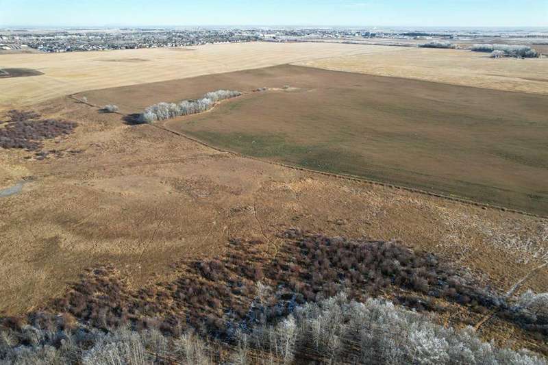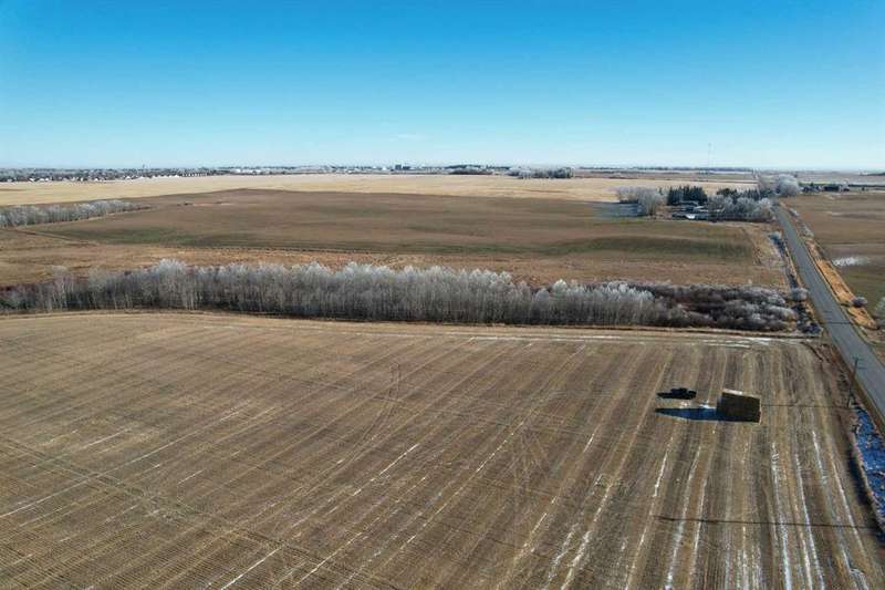 WOW! WOW! WOW! What else can be said to describe this quarter section (159.0 acres) of highly productive cultivated farm & pasture land situated in Mountain View County on the south-west town limit of OLDS, AB. Incredible rural-urban fringe land buying opportunities like this don't come around very often. Approx. 92 acres of cultivatable crop land with the remainder in pasture and yard site. Numerous potential new building site locations for your dream home on this land. The property is being sold with the current tenant (& sub-tenant) in place - $12,000 rental income per year for the entire property- ask a Realtor for further details. The mature treed yard site has a tenant occupied old house - LIST PRICE BASED ON LAND, SERVICES, & FARM OUTBUILDING VALUE ONLY. The yard site is accessed right off pavement & has power, drilled water well, steel quonset, barn, and 2 steel grain bins. Yard site is on propane - no natural gas service on the property at this time. Subdivide the original yards site or the naturally severed parcel in SW corner (Requires county approval). This once in several generations investment opportunity is not to be missed!!