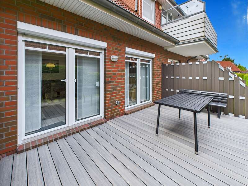 This inviting end-terrace house in the idyllic climatic health resort of Werdum was built in 1995 and impresses with its well-kept condition and well thought-out room layout. With approx. 76 m² of living space, it offers enough room for relaxing vacations or restful weekends by the North Sea. On the first floor, you will find a spacious, light-flooded living room with direct access to the sunny terrace - the perfect place for cozy hours outdoors. The adjoining, spacious kitchen was recently equipped with a high-quality, modern fitted kitchen and invites you to cook and enjoy. A practical guest WC rounds off the space on the first floor. The upper floor houses two cozy bedrooms that invite you to relax and dream. There is also another small bedroom in the converted loft, ideal for guests or as a retreat for the little ones. For added convenience, there is a parking space right next to the house. Bicycles can be conveniently stored in the communal room - perfect for excursions into the beautiful East Frisian countryside or to the nearby North Sea coast. Whether as a vacation home or for your own use - this terraced house promises pure relaxation and makes vacation dreams come true. Don't miss out on this opportunity! An exclusive 360-degree tour is available to give you a comprehensive impression of this special property in advance. We would also be delighted to invite you to a personal viewing and look forward to presenting this charming house to you in more detail.