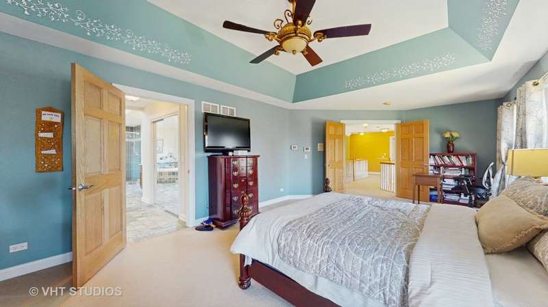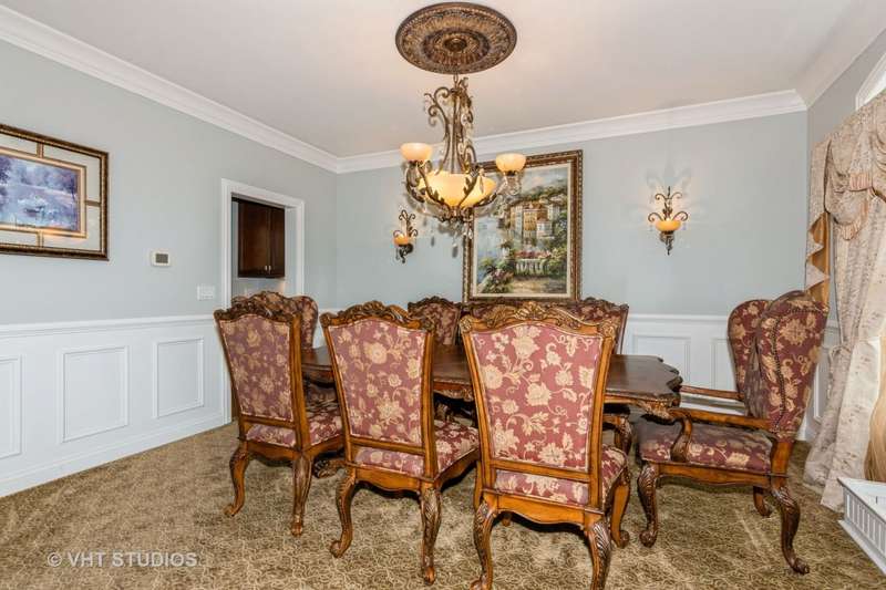 Welcome to this beautifully crafted, all-brick residence tucked away on a quiet cul-de-sac in the sought-after Vittoria Brooke Estates. Step into the grand two-story foyer and be welcomed by expansive, sun-filled living spaces, gleaming hardwood floors, and newly updated front windows that invite the outdoors in. Enjoy serene views from your backyard oasis, complete with trees for added privacy, a refinished deck (2024), and a tranquil pond perfect for fishing or unwinding. The heart of the home-the kitchen-boasts refaced cabinetry (2024), granite countertops, and a generous center island ideal for entertaining. A walk-in pantry and butler's pantry provide ample storage and convenience, flowing seamlessly into the spacious family room with its soaring cathedral ceilings, abundant windows, and cozy fireplace. On the main level, a flexible bonus room sits next to a full bathroom, offering an ideal setup for a home office, guest suite, or in-law arrangement. The primary suite is a true retreat with an oversized walk-in closet and a spa-inspired bath featuring dual vanities, a jacuzzi tub, and a laundry chute for added ease. Skylights and rich stone finishes bring a luxurious touch to the additional bathrooms. The walkout basement adds even more living space with a large rec room, rough-ins for a second kitchen, sauna, and full bath, plus a bonus room ready for your vision. To top it off, the home is equipped with an intercom and audio system that extends to the outdoors-perfect for everyday living or entertaining. Don't miss your chance to own this exceptional home that effortlessly blends comfort, functionality, and style.
