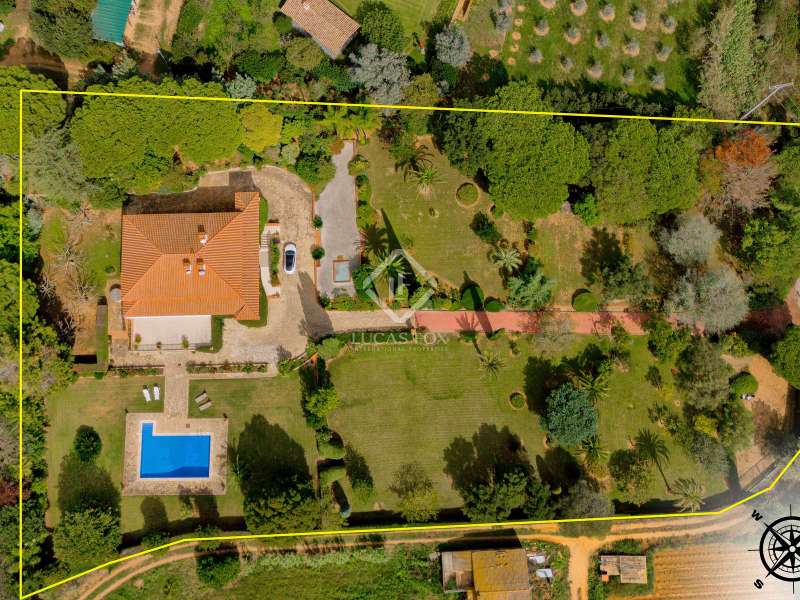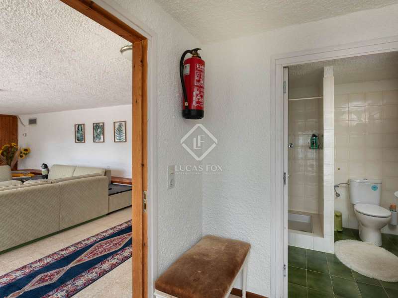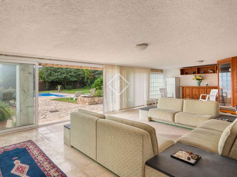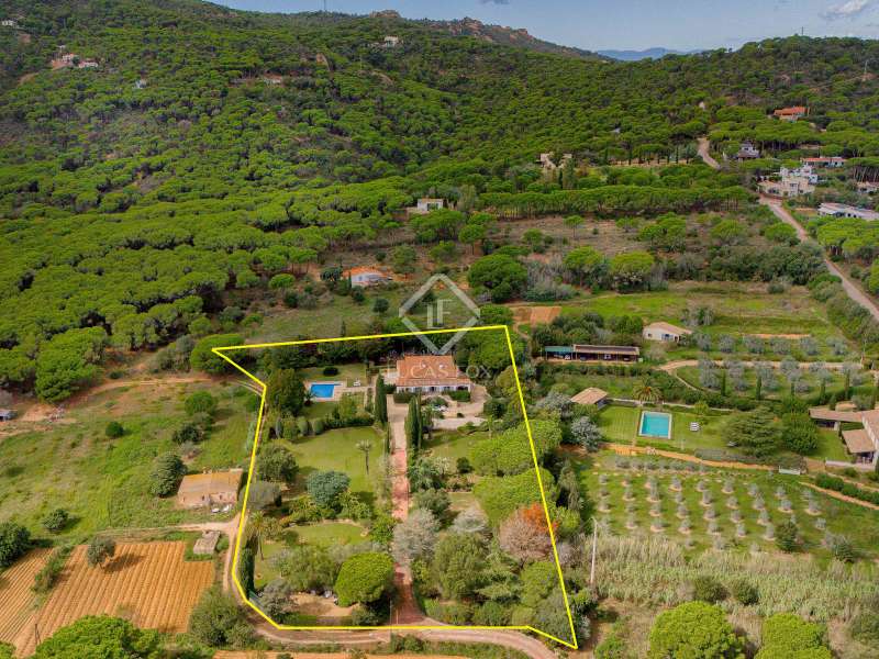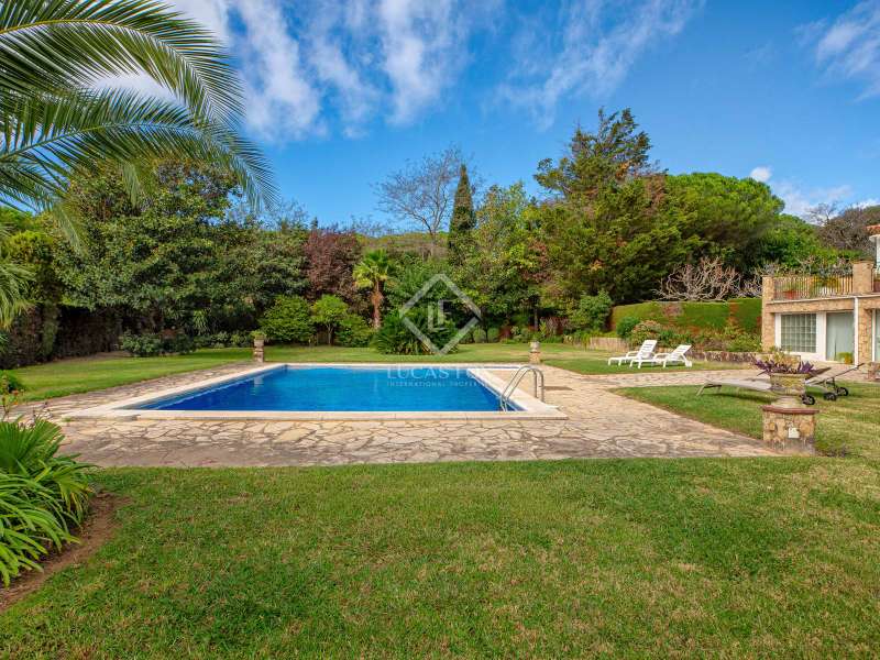 Lucas Fox presents Villa Amelia, a beautiful villa with total privacy in a natural setting with views of the sea and the mountains, in Sant Feliu de Guíxols. The 1975 property has a rustic style with stone walls and has a surface area of 538 m² built on a flat plot of 7,788 m² with grass, fruit trees and a large 10 x 6 metre saline chlorination pool. The property is accessed through an entrance surrounded by trees until reaching the building which is distributed over two floors. We go up to the main floor via a staircase that leads to the entrance from a large entrance hall. Next, there is a very spacious living-dining room with a fireplace. Then there is the separate fully equipped kitchen. On the same floor there is the night area with two large bedrooms with private bathrooms and two other bedrooms that share a bathroom. We go down to the lower floor , where there is a multipurpose room with a full bathroom . This room could be used as a home cinema room, gym or summer living room . On the ground floor, we have a garage for two cars with a double entrance, a storage room and the machine room. The night area has a parquet floor and built-in wardrobes , and the day area has a marble floor . The house has an oil heating system and several covered terraces. This is a perfect holiday property on the Costa Brava with lots of privacy. Please do not hesitate to contact us to visit this fantastic property or request more information.