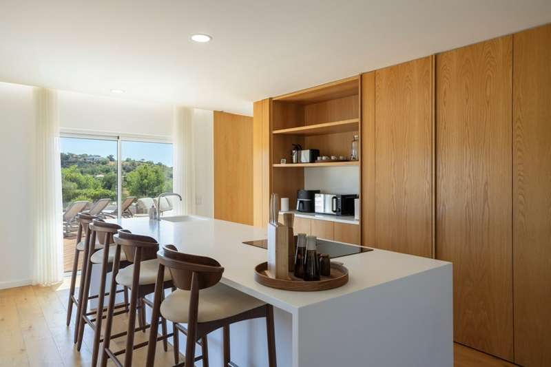 Discover this magnificent 4-bedroom villa recently built with contemporary architecture, located in the picturesque village of Estoi, in the heart of the Algarve. With a functional and harmonious layout, this property stands out for its 4 spacious bedrooms, two of which are elegant suites, designed to provide comfort, privacy and well-being. The villa also includes a 90 m² mezzanine , a versatile space that can be adapted to different needs: an additional living room, office or even a fifth bedroom. The interior reflects a modern and welcoming aesthetic, with high-quality finishes, air conditioning in every room, a fireplace in the main living room and excellent thermal and acoustic insulation, guaranteeing year-round comfort. One of the highlights is the private spa area, equipped with a sauna and Turkish bath - a true haven of relaxation within your own home. Outside, the spacious surroundings are meticulously cared for and include a large swimming pool integrated into a landscaped garden, perfect for moments of leisure with family or friends. The property also has private parking for three cars. Set in a quiet environment and surrounded by nature, this villa offers the serenity of the countryside with the convenience of being just 5 minutes from the center of Estoi and less than 10 km from the cities of Olhão and Faro, where you will find all the amenities and attractions. CHARACTERISTICS: Plot Area: 15 135 m2 | 162 912 sq ft Useful area: 260 m2 | 2 799 sq ft Deployment Area: 335 m2 | 3 606 sq ft Bedrooms: 4 Bathrooms: 4 Energy efficiency: B- FEATURES: New construction Modern villa 2 floors Private pool Spa Large rooms Garden