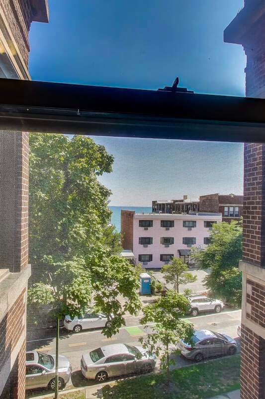 Bright and spacious 3-bedroom, 2-bath penthouse located on Eastlake Terrace, offering views of Lake Michigan. This move-in ready, top-floor home features large windows that bring in plenty of natural light throughout. Freshly painted with refinished floors, polished and well Maintained. The layout includes a large kitchen with ample cabinet space, two pantries, and recently updated stainless steel appliances. The living room is generously sized and opens to a sunroom that faces the lake, creating a relaxing space to enjoy the view. The primary bedroom connects to a shared en-suite bathroom. Additional features include in-unit laundry, updated HVAC, porch sliders, newer windows, and two storage areas, one private and one shared. A deeded, enclosed garage parking space is included in the price. With full access to beaches, parks, and lakefront trails, this home offers comfortable and convenient lakeside living. Live where the city meets the shore! Just steps from Lake Michigan and downtown Chicago, this beautiful home puts it all right at your doorstep.