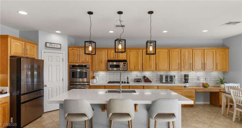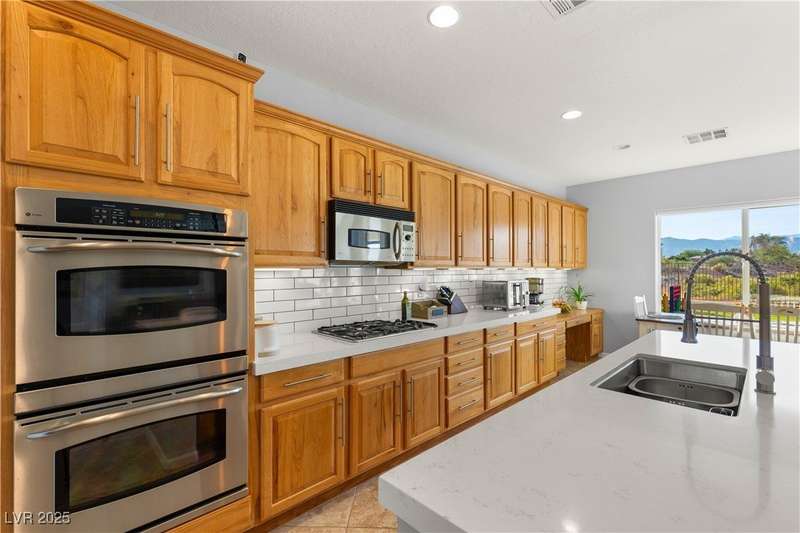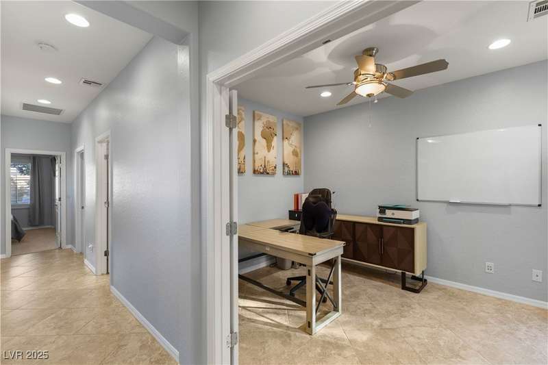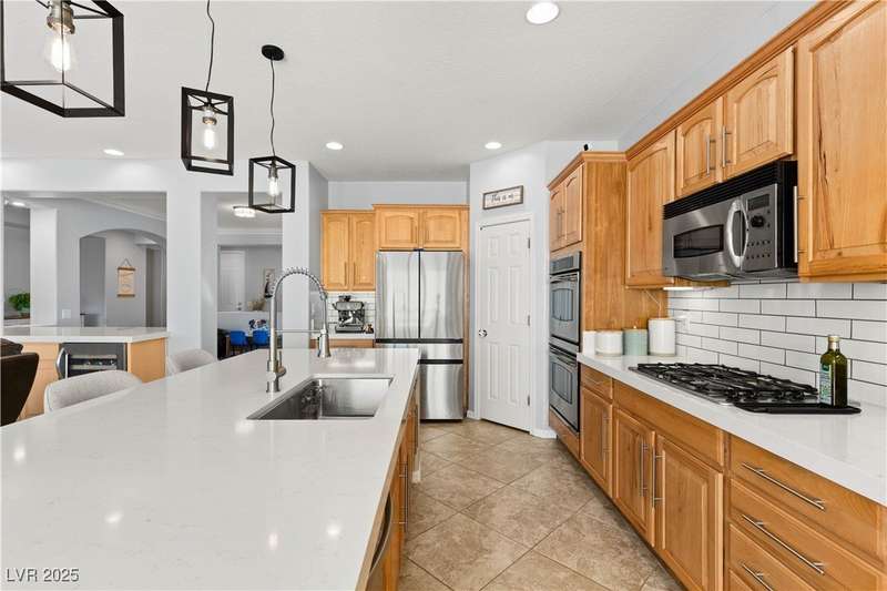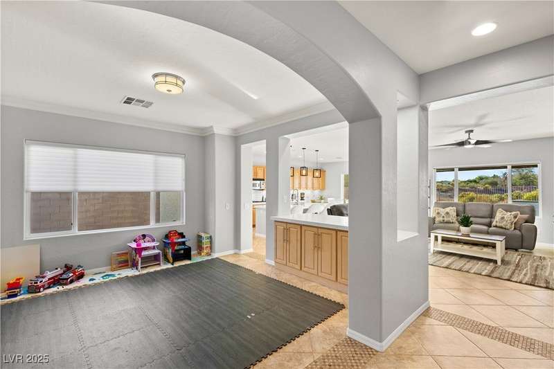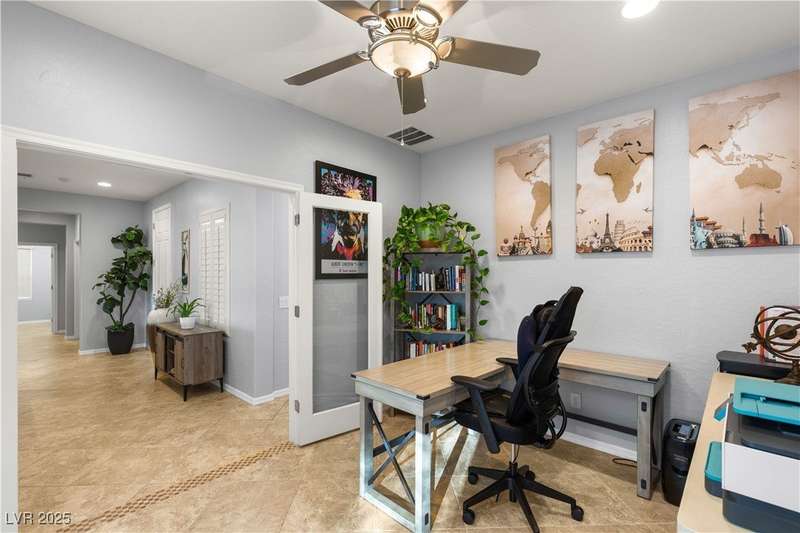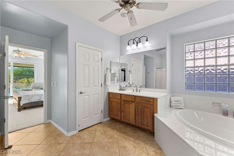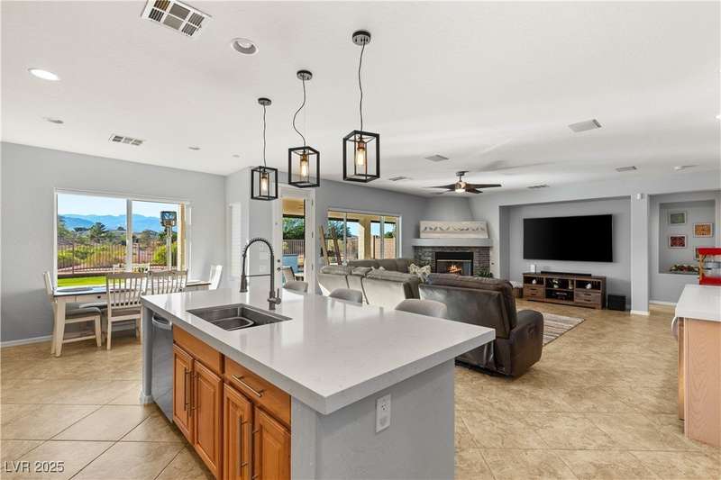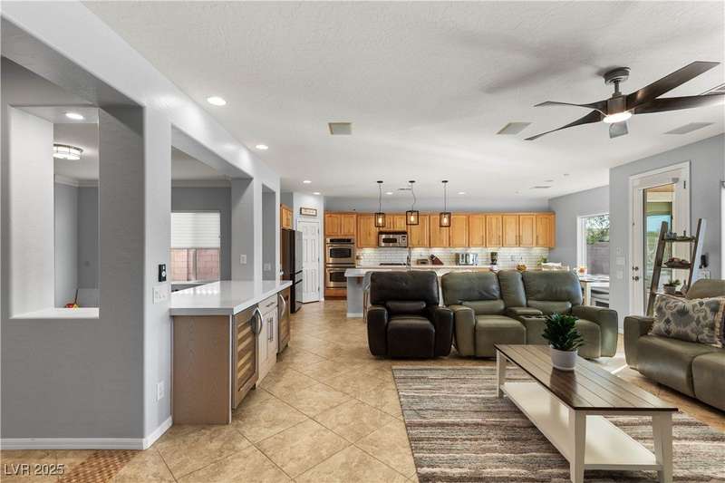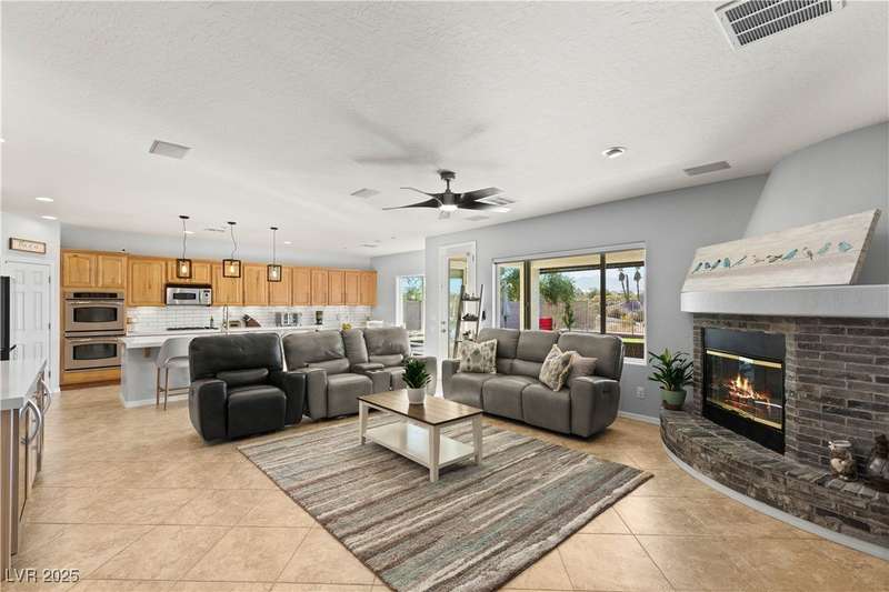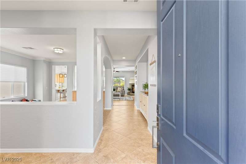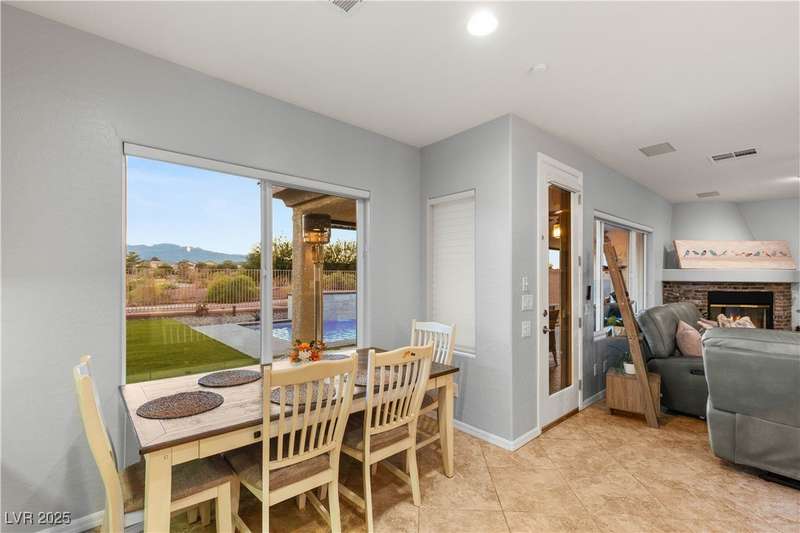Rare opportunity to own a fully upgraded single-story home with pool and spa in a guard-gated community. Enter through a charming gated courtyard surrounded by desert landscaping and step into an open modern floor plan with 10-ft ceilings and Santa Fe textured walls. The great room showcases a designer adobe fireplace, built-in bar with dual wine fridges, and expansive dining area with views of the resort-style backyard. The chef’s kitchen features a large island, walk-in pantry, double ovens, and plenty of cabinet space. The spacious primary suite includes patio access, a spa-like bath with soaking tub, glass shower, and oversized walk-in closet. Enjoy total privacy in the backyard oasis with lap pool, infinity spa, waterfall wall, and fire pit—set against mountain views and no rear neighbors. Additional highlights include a flex room, Tonal gym setup in the cooled garage, epoxy flooring, Hunter Douglas shades, and a full Aqua Kleen water system.
