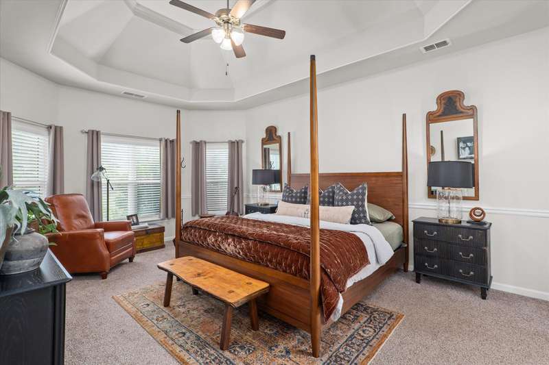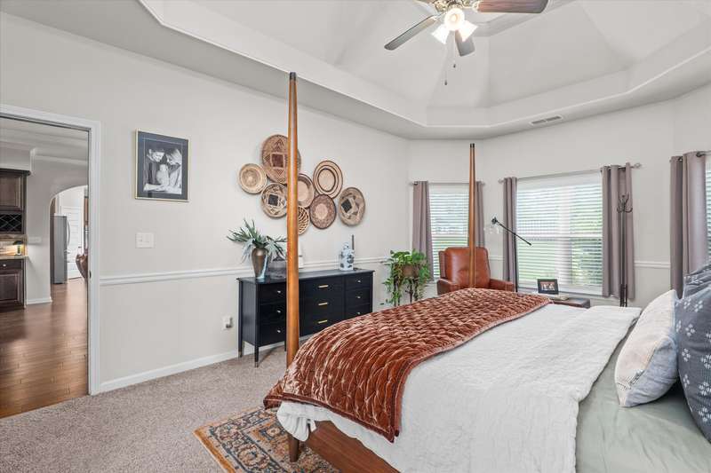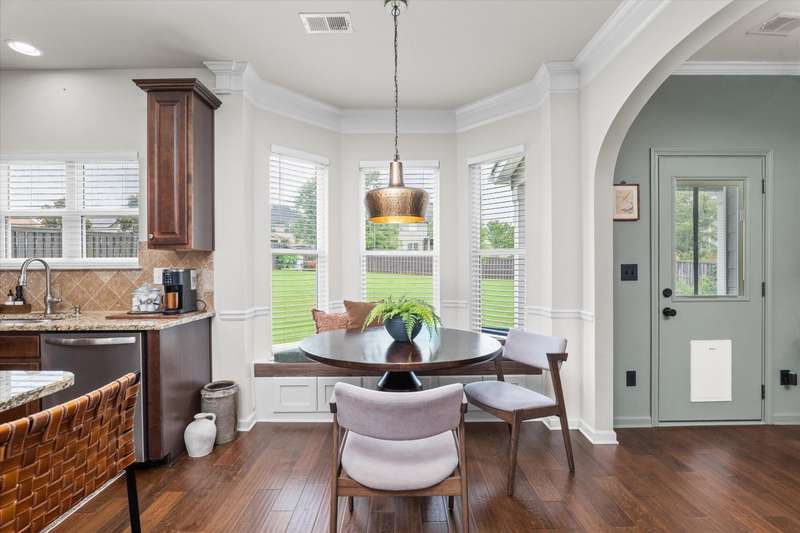 Better than new and meticulously maintained, this 4-bedroom, 3.5-bath home for sale in Wando Woodlands offers main-level living with designer features throughout. The open-concept kitchen shines with granite countertops, stainless steel appliances, gas cooktop, butler's pantry, walk-in pantry, task desk, and a bay-window breakfast nook with a custom built-in bench. The spacious living room features coffered ceilings, upgraded lighting, and durable hardwood floors. The owner's suite on the main level includes a private sitting area and spa-like bath with soaking tub, tiled shower, and dual vanities. Upstairs offers three generously sized bedrooms-all with walk-in closets-plus two full baths and a loft perfect for a media room or office. Enjoy outdoor living in the fully fenced backyard with a covered patio and lush landscaping enhanced by a French drain. Other highlights include a new architectural shingle roof, extended driveway, professionally installed garage storage, and premium finishes throughout. Zoned for North Augusta schools and just minutes from I-20, Fort Eisenhower, and downtown Augusta-this home is 100% move-in ready.