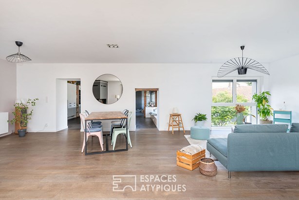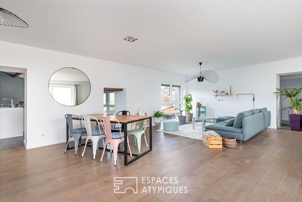 In Rillieux-la-Pape, in the heart of a quiet and sought-after residential area, this fully renovated 310sqm former farmhouse with a swimming pool rises over three levels and comes with a separate 58sqm studio. Built on a 484sqm plot, it offers a privileged living environment, combining old-world charm with contemporary amenities. The entrance leads directly to the reception rooms, bathed in natural light, where exposed beams, noble materials, and generous volumes harmoniously complement each other. A fully equipped kitchen extends the dining area, while a cozy living room benefits from high ceilings. The upper floors accommodate several bedrooms and multipurpose spaces, allowing for offices, workshops, or suites as needed.