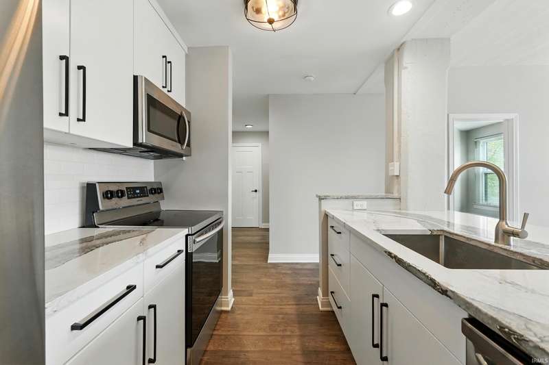 Live in the Heart of Downtown Fort Wayne Welcome to Midtowne Crossing Unit #329 – a rare and beautifully updated 2-bedroom, 2-bath condo just steps away from the city’s best dining, entertainment, and cultural experiences. Step inside and fall in love with the modern, open-concept layout featuring tall ceilings, oversized windows, and luxury vinyl plank flooring throughout. The kitchen is a standout with Quartz countertops, soft-close dovetail cabinetry, stainless steel appliances, pull-out shelving, and a breakfast bar that opens to a bright and spacious living area. Each bedroom has its own full bathroom, offering privacy and comfort. The primary suite includes a walk-in closet finished by Closet Concepts and a stylish ensuite with a subway-tiled walk-in shower and Quartz vanity. This condo has been completely repainted and thoughtfully updated throughout—move-in ready and full of modern touches. Building amenities include a beautifully landscaped courtyard and raised patio, two fitness areas, common laundry facilities on each floor, a secured parking garage with a transferable space available for a monthly fee, and a dedicated basement storage locker. Monthly HOA fees cover water, sewer, trash, and general maintenance, making for easy, low-stress living. All of this just minutes from Parkview Field, Promenade Park, The Landing, Embassy Theatre, the Allen County Public Library, and Fort Wayne’s favorite restaurants and venues. Don’t miss this rare opportunity to own an updated condo in one of downtown Fort Wayne’s most desirable locations.