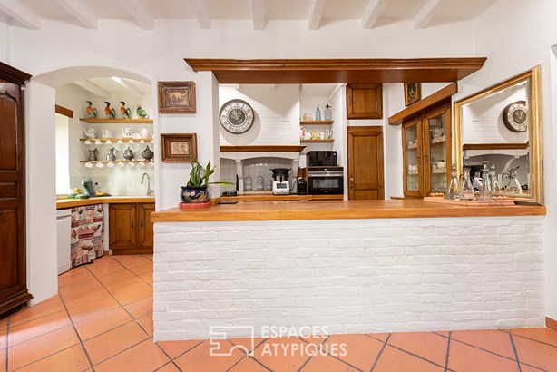 From the moment you enter, the charm is immediate. The carefully fitted kitchen opens onto a pleasant dining room, ideal for family gatherings. The living room, with its high ceilings, is on the same level. This inviting space has direct access to the outside.