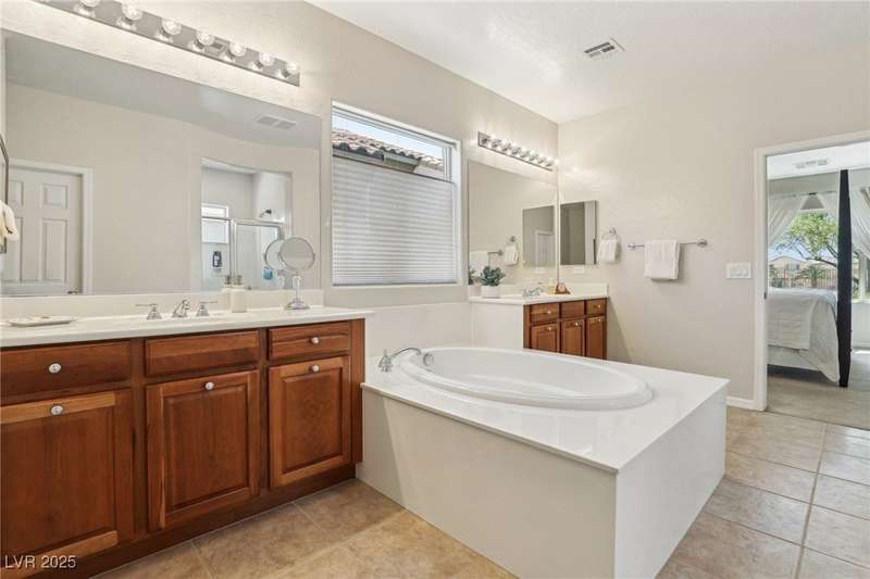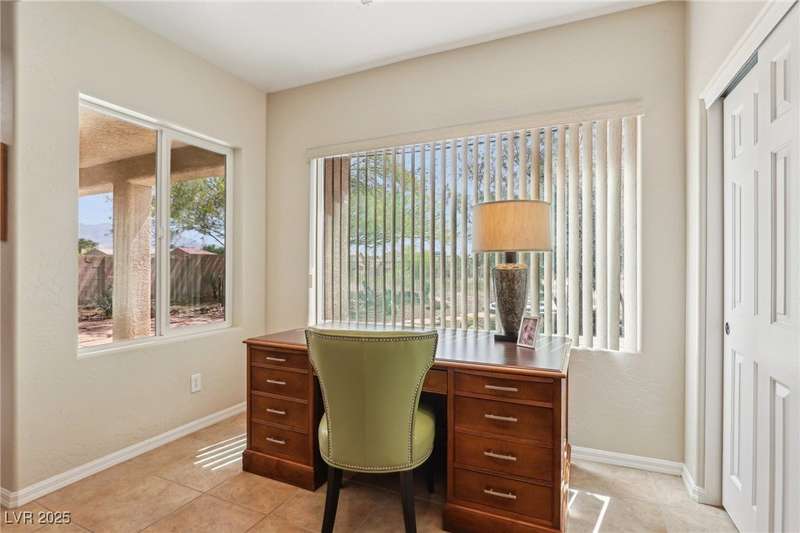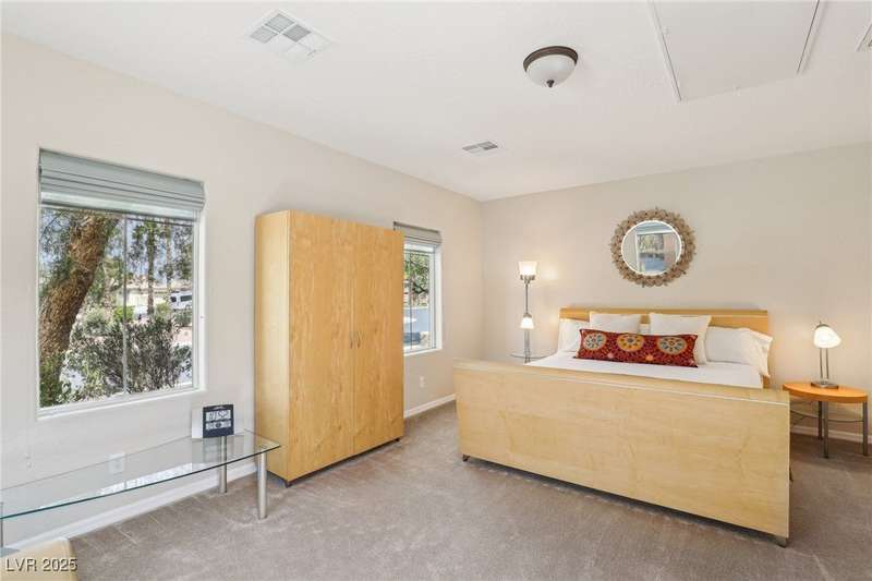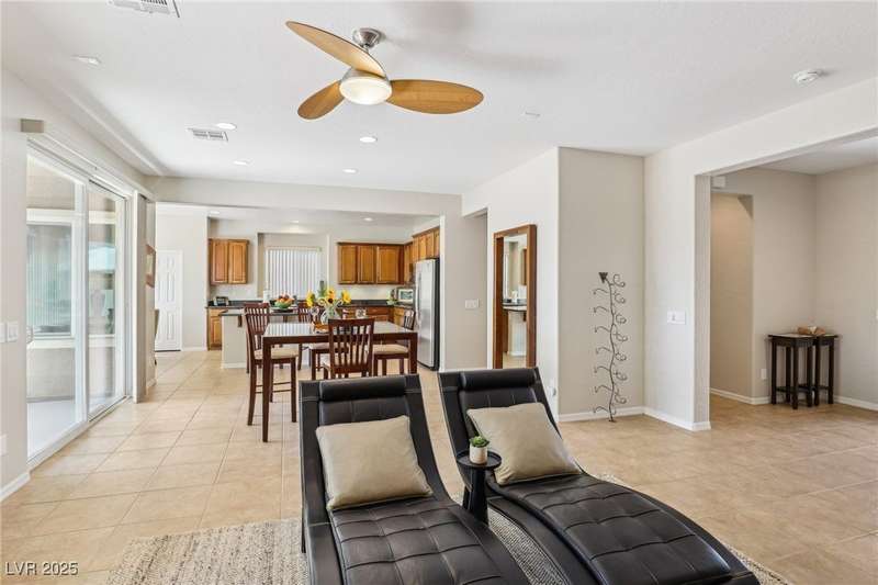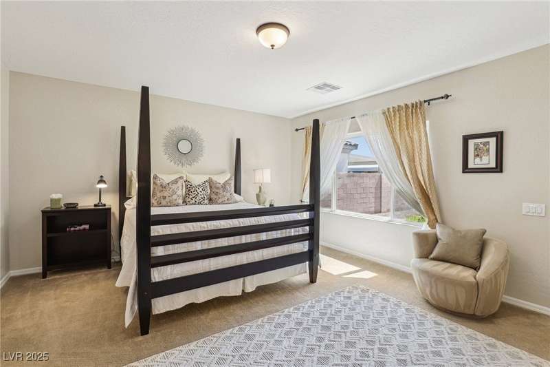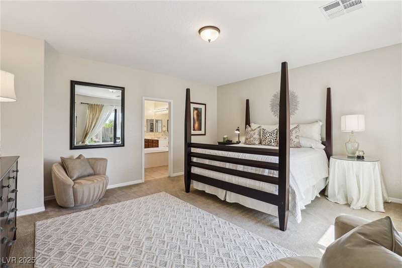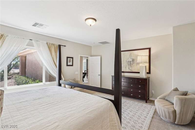 THE PALMS @ SILVERSTONE RANCH PARADISE – A rare opportunity to own this impeccably maintained, original-owner single story in the prestigious guard-gated Silverstone Ranch community! This in-demand 2,401/sqft floorplan offers approx 2,100sqft, 3BR/2BA in the main house AND a 300/sqft 1BR/1BA attached CASITA w/its own PRIVATE entrance. Pride of ownership throughout, from the expansive living room w/fireplace, the chef’s kitchen featuring granite counters, large island & GE Profile appliances. Boasting a spacious zen-like Primary suite, Primary Bath offers a spa-inspired ambiance w/dual vanities, soaking tub, walk-in shower & 2 walk-in closets. Enjoy gorgeous sunsets & serene mountain views from the delightful 8,712/sqft lot that backs to greenbelt. NEW Bosch 5-ton, 18 SEER HVAC (2022). Gated courtyard entry & an extended covered patio is designed for outdoor living. Ideally located near the 95 & 215, shopping/dining/schools & parks. You don't want to miss out on this exceptional home!