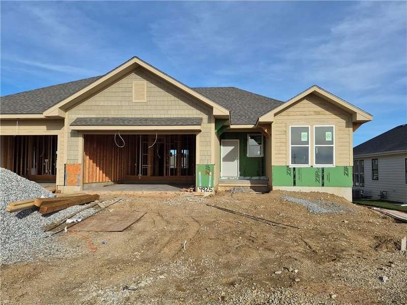 The Clover by Roeser Homes on lot 18R. Live in a beautiful GOLF COURSE COMMUNITY at this price? Yes! FINISHED PHOTOS and TOUR ARE OF A PRIOR BUT SIMILAR HOME. Home is under construction with estimated completion late 1Q. The great open plan includes arched doorways and a vaulted family room and kitchen ceiling! Just the right amount of space with the owner's suite and a second bedroom and bath on the main floor with a second living area on the lower level along with the third bedroom and third full bathroom. Tons of storage as well. Some of the other features of the home include quartz in kitchen, gas cooktop, wall oven and microwave, and a gas fireplace. A nice sized pantry and laundry room are both right off the kitchen. The covered deck is protected on three sides and is shaded from the afternoon sun. Enjoy golf course living in the beautiful Communities of Falcon Lakes!! Great highway access make all parts of the metro area easily accessible. It is less than 15 minutes to the Legends entertainment and shopping district and just 30 minutes to the airport. HOA provides lawn maintenance (mowing and treatments), maintenance of initial landscaping, snow removal over two inches, as well as paint, roof and gutters, as needed. Acclaimed Basehor-Linwood Schools!