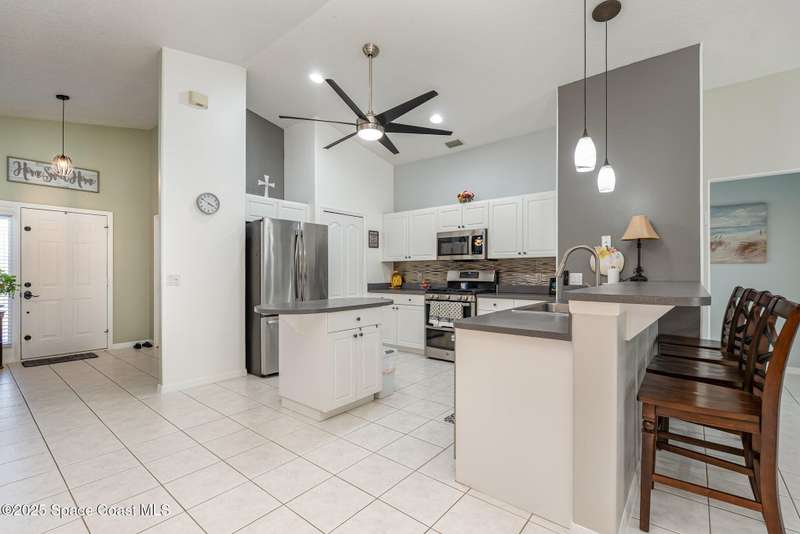 Welcome to 918 Pine Creek Circle, a move-in ready home located in the highly desirable, quiet, gated Sandy Pines Community of Palm Bay. This home is the perfect fit for families or those looking to downsize without compromising on comfort or peace of mind. The property has been thoughtfully upgraded with a whole-home stand-by generator, hurricane-impact windows, sliders, doors, and garage door, plus a gas range for the cooking enthusiast. Recent updates include a 2017 roof, HVAC replaced in 2021, water heater in 2022, and a newly screened-in patio for enjoying Florida evenings year-round. Inside, you'll find an inviting open-concept floor plan with high ceilings, modern kitchen with stainless steel appliances, and spacious living and dining areas filled with natural light. Located just 15 minutes from the beach and close to major aerospace employers, this home combines convenience, security, and lifestyle in one beautiful package. You have access to the RV storage lot for $35 monthly.