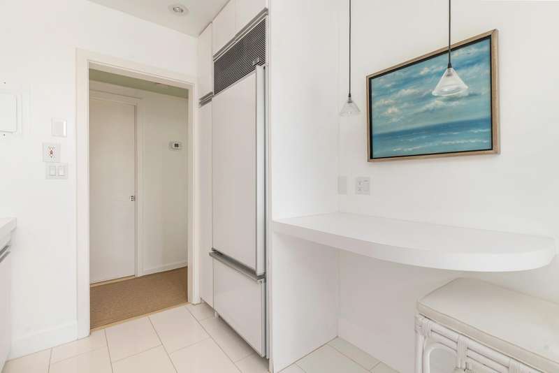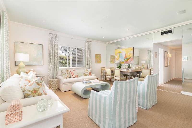 Wonderful opportunity on the Island in sought after charming 8 unit boutique building - top (2nd) floor 2BD/2BA, 9' ceilings, 20' private balcony, awash in light on 3 sides with tree top views on quiet block. One block to beach, Lake Trail, close to restaurants, shopping, grocery. Hurricane windows and doors throughout. Washer/dryer in unit, pet friendly. Large community terrace with grille, extra storage.