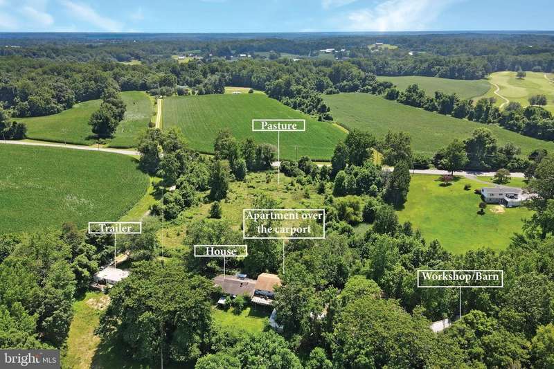 This unique property offers a total of 9.08 acres. Value is in the land. Whether you're dreaming of a private retreat, hobby farm, or full restoration project, this property is full of potential. The land features a pasture, a pond, a main home built in 1949, a 3-bedroom, 2-bath apartment above the carport, one trailer, a large barn/workshop, and several smaller outbuildings. 5292 Moreland Rd is 8.75 acre, zoned RA, Tax ID 020100090035380. Cottonwood Dr is .33 acre, zoned OS, Tax ID 020149590043179. Seller thinks there are two septic systems on the property, one serving the original 1949 house and one serving the trailer. Seller has no septic reports. Anne Arundel County has no records for the current septic systems, however the county has passing percs on file (see provided documents). Property has one well, which functions fine. Original 1949 house could have mold and has visibly sloping floors on main level (basement below). Sold AS IS. Property is not eligible for most financing. PROPERTY IS OCCUPIED, SHOWINGS BY APPOINTMENT ONLY.