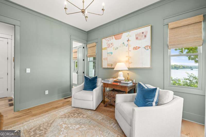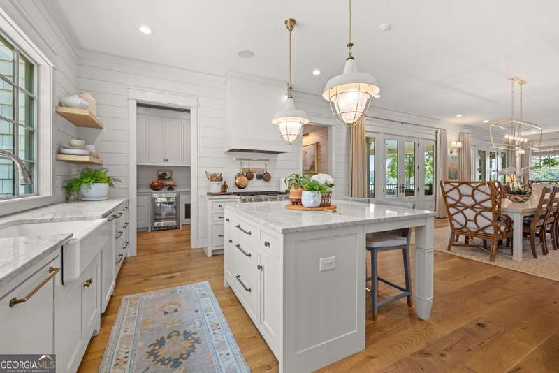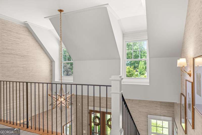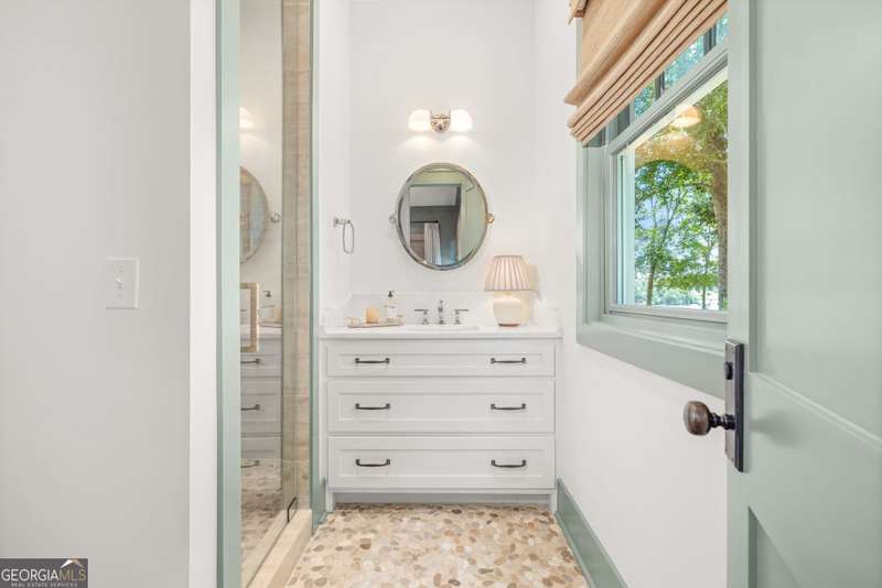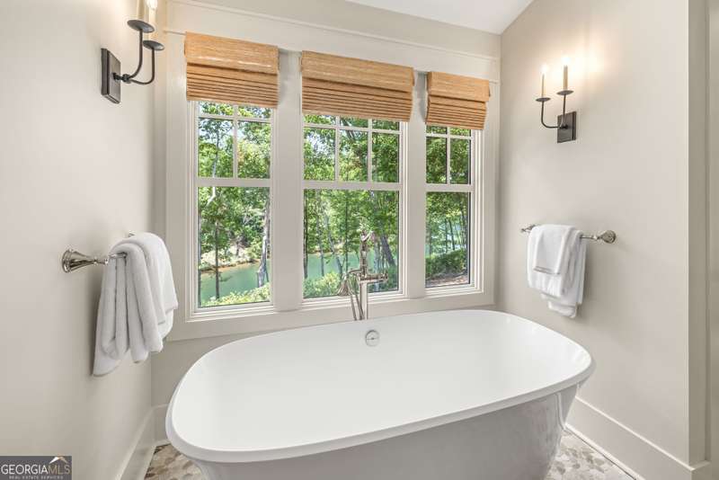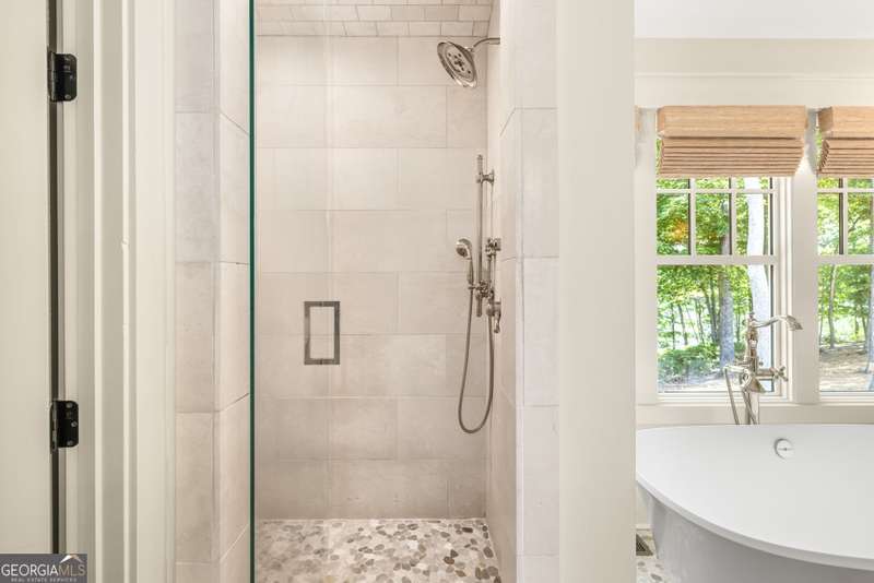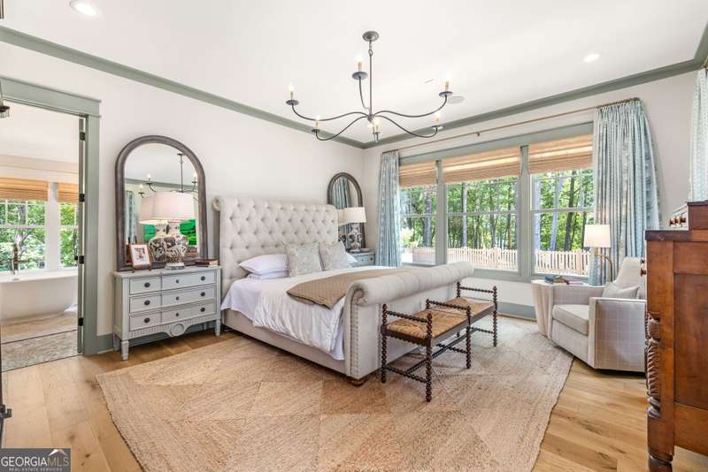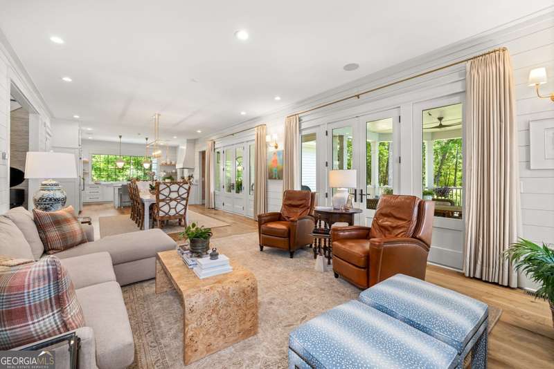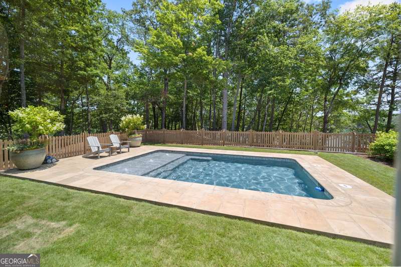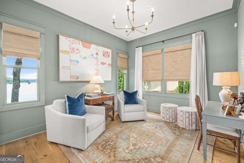 Southern coastal charm meets Lake Lanier luxury in this exceptional custom-designed estate, perfectly positioned on a private point lot surrounded by water and breathtaking lake views. Tucked away behind private gates and down a long, secluded driveway, this stunning home offers the ultimate in resort-style living, just minutes from the Chattahoochee Country Club and its private marina. Designed by renowned architect Stephen Fuller, this four-bedroom, four and a half bath residence blends timeless architecture with modern luxury. The home features a hardy shake and river rock exterior, beautifully landscaped shoreline with river rock detailing, and year round views from nearly every room. A heated pool, level fenced backyard, covered back porch, and two detached two-car garages complete the outdoor oasis. Inside, the open-concept layout is filled with natural light and framed by walls of glass, maximizing the lake views. The two-story foyer opens into a vaulted great room with a stone fireplace and an elegant dining space. The gourmet kitchen is a chef's dream, with quartzite countertops, a large island, custom cabinetry, stainless steel appliances including a six-burner gas range, and a spacious prep pantry that doubles as a bar and entertaining space. The main-level primary suite is a serene retreat with views of the pool and lake, and a spa-inspired bath featuring a soaking tub, dual vanities, custom shower, and two walk-in closets. A second main-level bedroom and full bath offer flexibility for guests or a home office. Upstairs, a central gathering area leads to two generous en suite bedrooms with custom closets. Additional highlights include a welcoming office area off the kitchen, a large laundry room, and an unfinished daylight terrace level with approximately 2168 square feet ready to be customized. Modern conveniences abound, with a whole-house generator, natural gas for cooking, fireplaces, heating, and pool, plus an irrigation system, professional landscaping, and outdoor lighting. This home is a rare opportunity to enjoy the best of lakefront living, thoughtfully designed for both everyday comfort and exceptional entertaining.