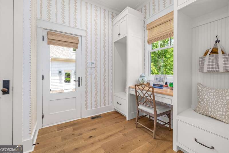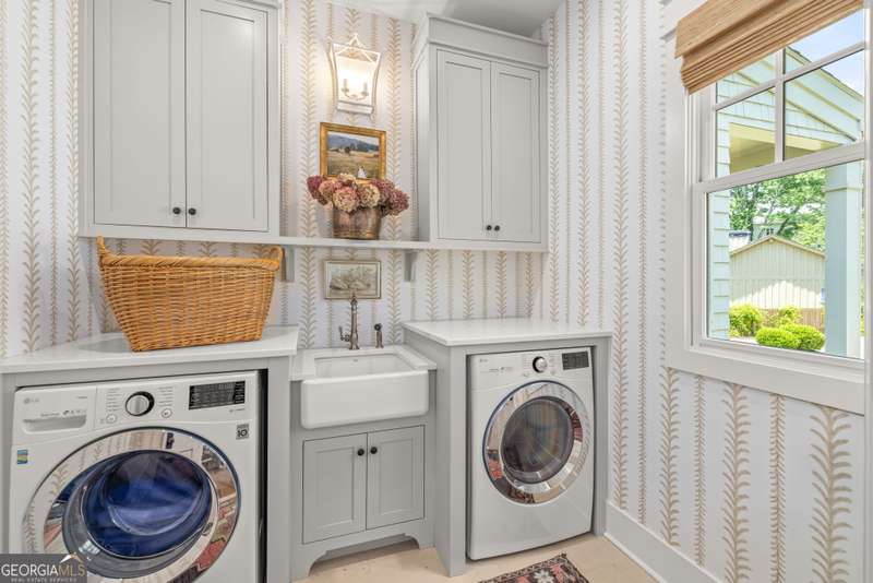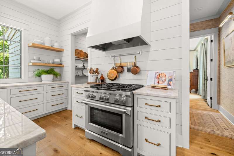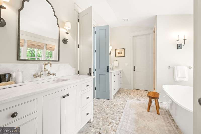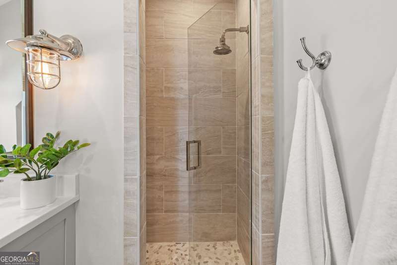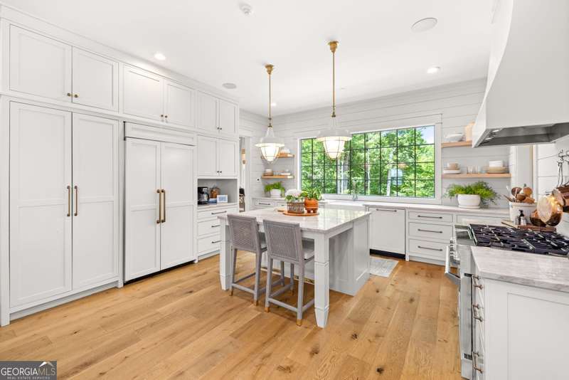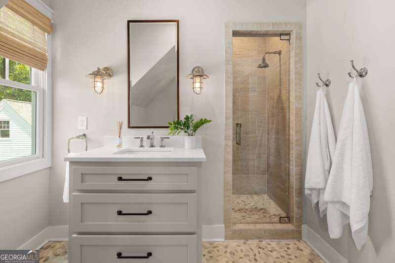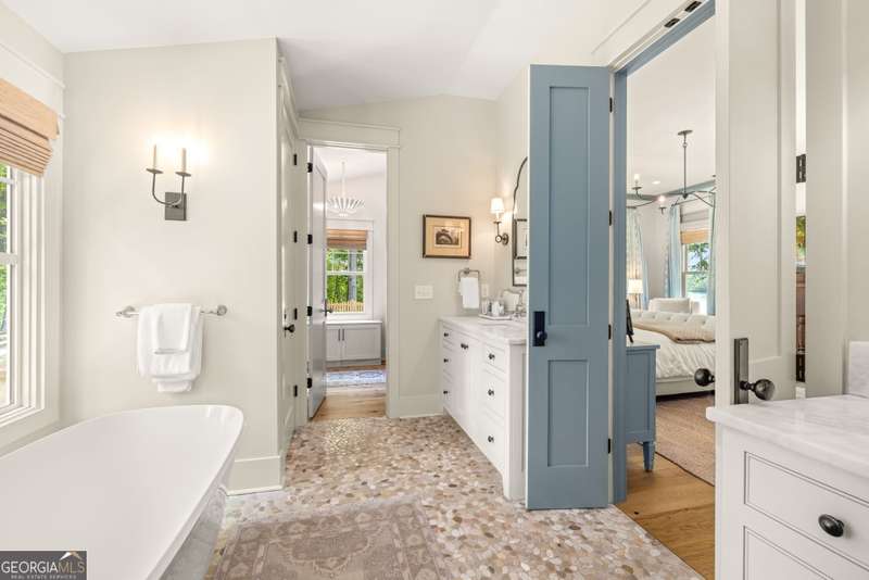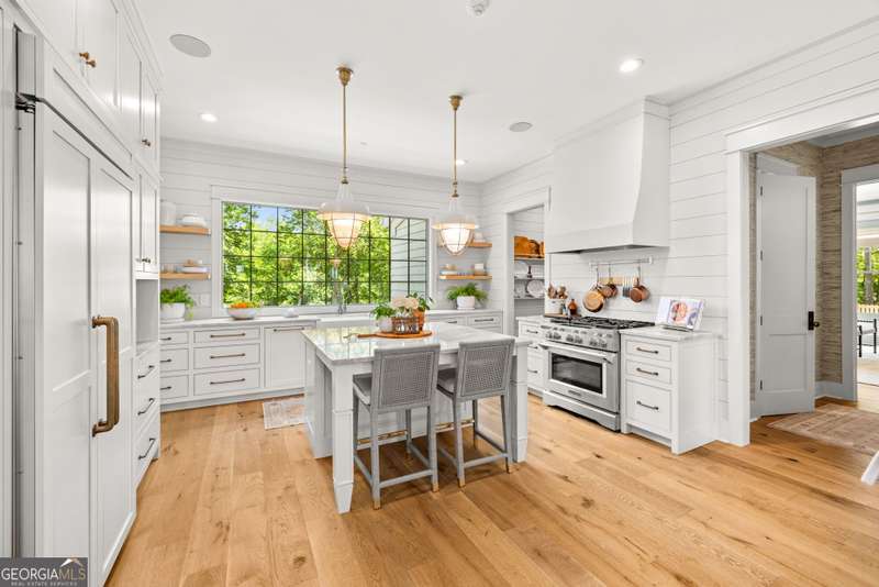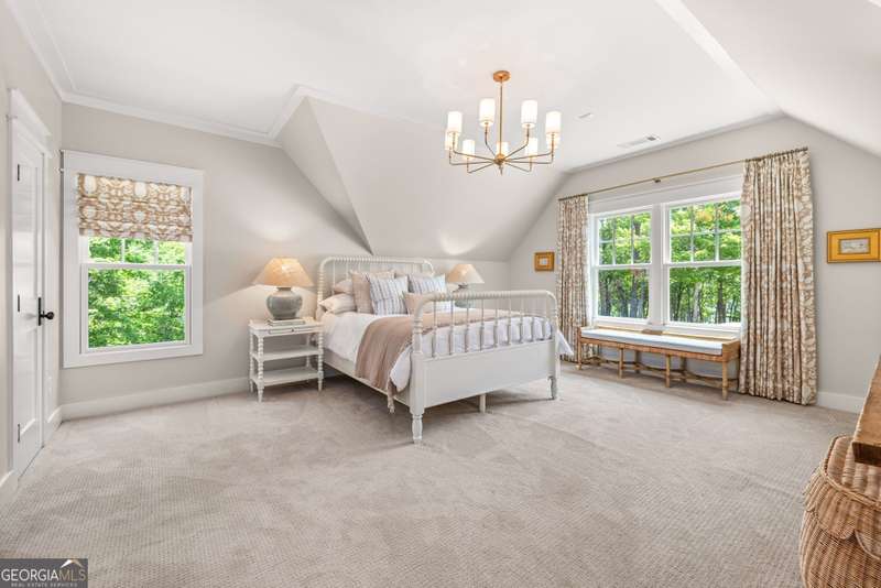 Southern coastal charm meets Lake Lanier luxury in this exceptional custom-designed estate, perfectly positioned on a private point lot surrounded by water and breathtaking lake views. Tucked away behind private gates and down a long, secluded driveway, this stunning home offers the ultimate in resort-style living, just minutes from the Chattahoochee Country Club and its private marina. Designed by renowned architect Stephen Fuller, this four-bedroom, four and a half bath residence blends timeless architecture with modern luxury. The home features a hardy shake and river rock exterior, beautifully landscaped shoreline with river rock detailing, and year round views from nearly every room. A heated pool, level fenced backyard, covered back porch, and two detached two-car garages complete the outdoor oasis. Inside, the open-concept layout is filled with natural light and framed by walls of glass, maximizing the lake views. The two-story foyer opens into a vaulted great room with a stone fireplace and an elegant dining space. The gourmet kitchen is a chef's dream, with quartzite countertops, a large island, custom cabinetry, stainless steel appliances including a six-burner gas range, and a spacious prep pantry that doubles as a bar and entertaining space. The main-level primary suite is a serene retreat with views of the pool and lake, and a spa-inspired bath featuring a soaking tub, dual vanities, custom shower, and two walk-in closets. A second main-level bedroom and full bath offer flexibility for guests or a home office. Upstairs, a central gathering area leads to two generous en suite bedrooms with custom closets. Additional highlights include a welcoming office area off the kitchen, a large laundry room, and an unfinished daylight terrace level with approximately 2168 square feet ready to be customized. Modern conveniences abound, with a whole-house generator, natural gas for cooking, fireplaces, heating, and pool, plus an irrigation system, professional landscaping, and outdoor lighting. This home is a rare opportunity to enjoy the best of lakefront living, thoughtfully designed for both everyday comfort and exceptional entertaining.