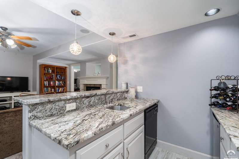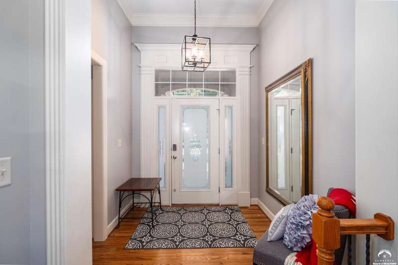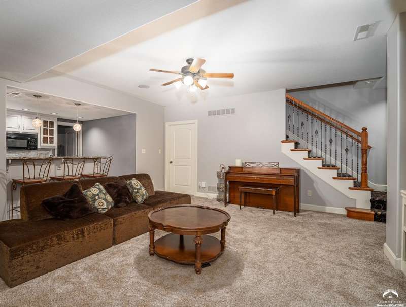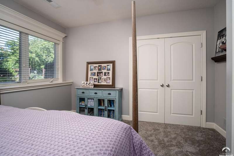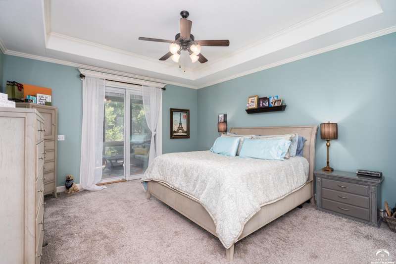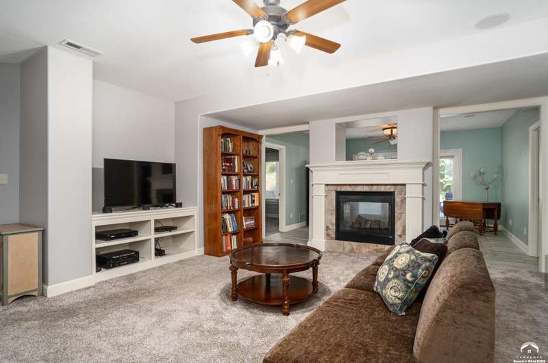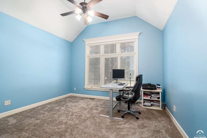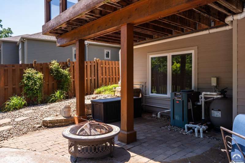 Welcome to your dream home in the desirable Fox Chase South subdivision! This beautifully detailed walk-out rancher offers over 3,400+ feet of thoughtfully designed living space, nestled against lush green space and—perfect if you crave privacy without sacrificing convenience. The main-level includes a Primary Suite with a custom screened porch & spa bath, a thoughtfully updated open kitchen/dining space and a deck with amazing views of the custom salt-water pool and patio. The lower level includes one en-suite bedroom, wet bar, living/sunroom space and two more bedrooms. The expansive storage area could be easily finished for additional office/flex space. Located just minutes from Corpus Christi Catholic Church, Langston Hughes Elementary School, Free State High School and the Rock Chalk Sports Pavilion—everything you need is nearby. Easy access to Kansas City & Topeka, Clinton Lake and the Lawrence Loop Trail will also make your life easier. Enjoy peaceful mornings on your screened porch and evening sunsets on your expanded deck, all while overlooking the serene natural backdrop of the adjacent green space.