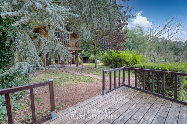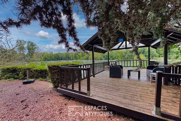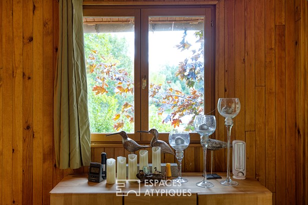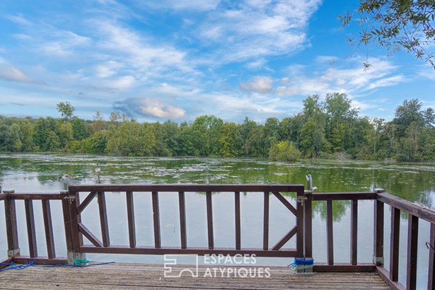 A few kilometers from amenities, in a secluded natural setting, this set of two wooden chalets sits on a plot of approximately 3,000 sqm, on the edge of a pond where fauna, flora: and silence reign supreme. Upon arrival, the atmosphere changes. Steps lighten, gazes calm. A pontoon on stilts, topped with a roof, overlooks the clear, fish-filled waters: impressive carp, herons, moorhens, dragonflies: A boat is ready to sail between the water lilies. Here, each sunrise becomes an invitation to contemplate.