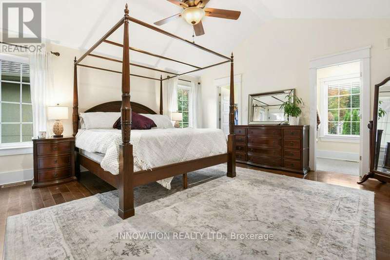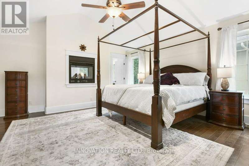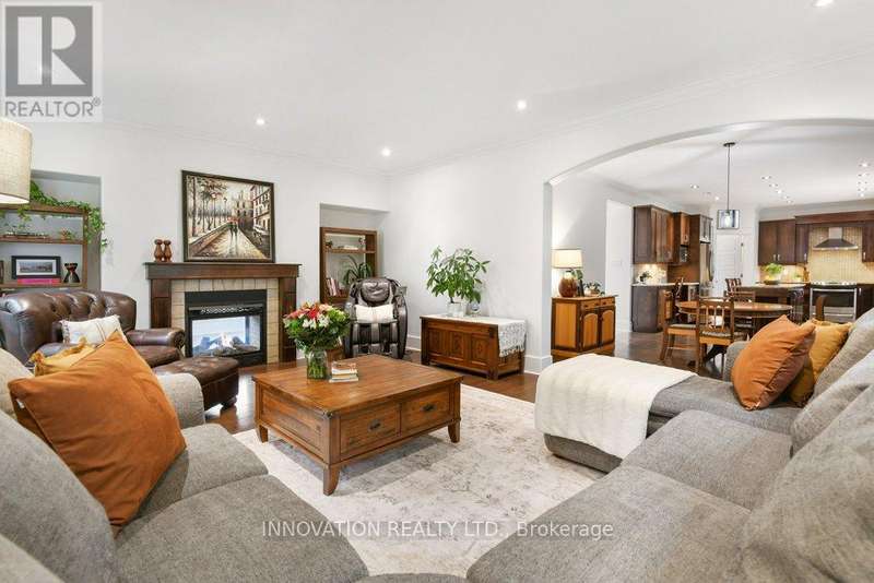 Luxurious Retreat in Carp's Premier Neighbourhood, Nestled on a generous pie-shaped lot in one of Carp's most coveted neighbourhoods, this 4+1 bedroom, 3.5-bathroom luxury home offers an unparalleled blend of elegance and comfort. Tucked away in a serene, quiet court, this meticulously designed residence is finished top to bottom with high-end touches, creating exceptional living spaces both indoors and out. Step inside to discover rich hardwood flooring flowing throughout the main level, where a beautifully appointed kitchen awaits with premium finishes, perfect for culinary enthusiasts. Host gatherings in the formal dining room or relax in the bright, spacious living area, warmed by a double-sided gas fireplace that also enhances the charm of the adjacent home office an ideal space for remote work. Upstairs, the primary suite is a true haven, boasting double closets and a stunning double-sided fireplace that extends into the spa-like ensuite. Unwind in the luxurious soaker tub, enveloped by the soft glow of the fire, creating a tranquil escape from the everyday. The fully finished lower level is designed for flexibility, ideal for multi-generational living or hosting guests. Featuring a spacious bedroom, full bathroom, wet bar, and a cozy gas fireplace, this level is perfect for movie nights or entertaining friends in style. Step outside to your private backyard retreat, complete with a fully fenced yard, mature gardens, a new deck (2025), ideal for outdoor entertaining or quiet evenings under the stars. Fresh landscaping enhances the beauty of this outdoor haven, while an endless pool (2016) offers year-round relaxation. Move-in ready with recent updates, including laminate flooring (2019), new fridge (2024), washer, dryer (2025), slide-in stove/oven (2019), dishwasher (2018), fresh paint (2023/2025). Every detail has been thoughtfully considered to ensure modern comfort and style. (id:6509)