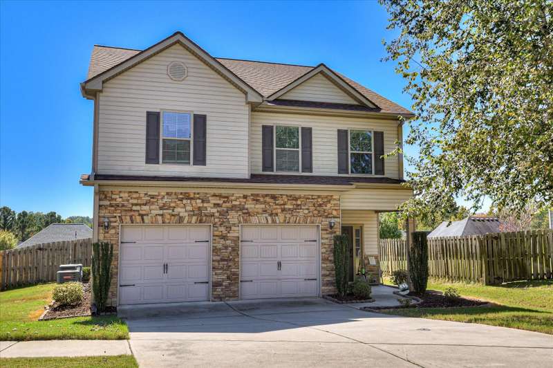 Welcome Home to Columbia County Living. Tucked away in a quiet cul de sac, this two story home perfectly blends comfort, function, and southern charm. From the moment you walk in, the warmth of hardwood floors and a cozy fireplace set the tone for relaxed family living. The kitchen is designed for connection with granite countertops, stainless steel appliances, a center island, and plenty of space to cook, gather, and make memories. A formal dining area and convenient half bath downstairs make hosting easy and effortless. Upstairs, you'll find a spacious primary suite with a double vanity, garden tub, separate shower, and generous closet space. Three additional bedrooms, a full bath, and a laundry room complete the upper level, giving everyone their own comfortable space. Step outside to a fenced backyard with a patio area, perfect for grilling out or letting the kids and pets play safely. Located just minutes from I 20, Fort Gordon, local hospitals, and all the restaurants and shopping Columbia County has to offer, this home keeps you close to everything while still offering that quiet neighborhood feel.
