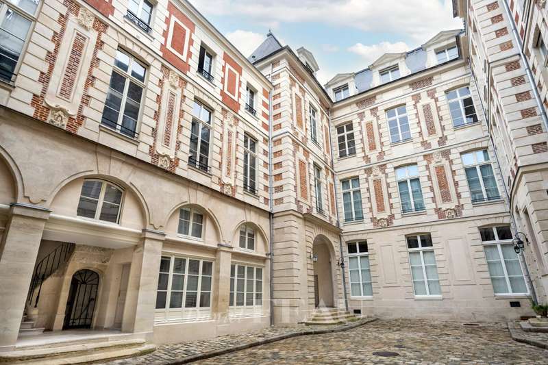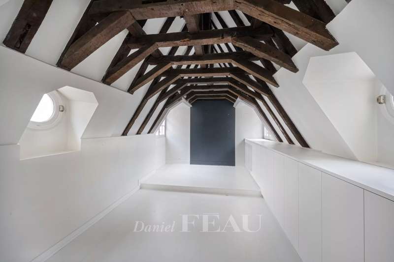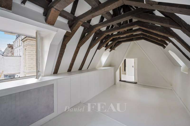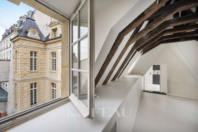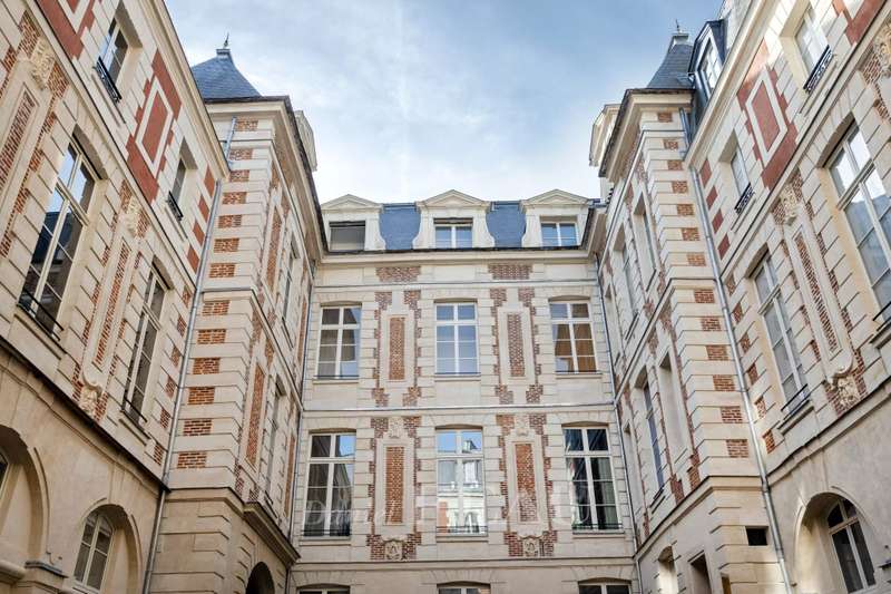 Rue Vieille du Temple. This 54 sqm apartment featuring high ceilings is on the 2nd floor of the Hotel d’Hozier, a magnificent private mansion dating from 1623 and among the finest in the capital’s historic Marais neighbourhood. Set between the street and a garden, it includes a dual-aspect living room featuring superb exposed beams, a kitchen, a bedroom, a bathroom and a wc. With a cellar. The apartment has no neighbours above.