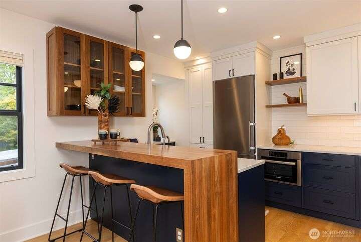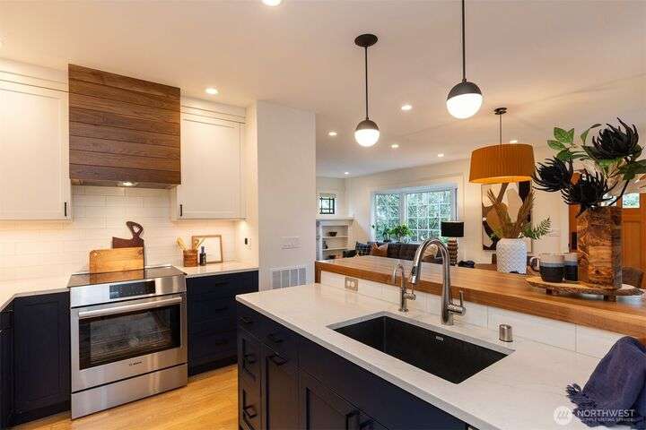 Been waiting for that turnkey house in a perfect location? Well, here it is. With new hardy siding, new windows, award-winning kitchen remodel, renovated bathrooms, high ceilings, custom built-ins, wood-burning soapstone fireplace, private backyard w/mature landscaping, oversized deck & Ipe front stoop... This craftsman is DIALED & full of charm. On a perfectly located street in Tangletown, blocks to Zoka, McDonald International & the Lake & proximity to 99, I5 & transit, this is the in-city oasis you seek! The main floor boasts a fully remodeled living space w/ an open layout, 2 beds, a full bath and huge deck. Lower level features high ceilings, office space, media space, bed/bath & garage. This sweet craftsman checks all the boxes.