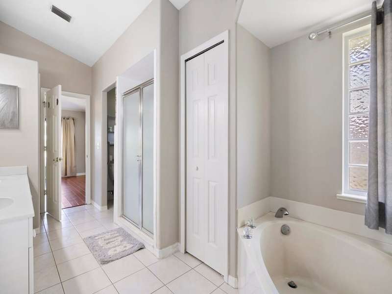 Buyer s financing fell though-Florida Pool Paradise! Bright, open & move-in ready! NEWER roof, soaring arched ceilings, white tile & wood laminate floors. Re-piped .Triple sliders lead to a sparkling screened pool & private lanaicomplete with cabana bath + outdoor shower! Chefs kitchen boasts white cabinetry, modern lighting & pass-through bar. The luxe primary suite features dual sinks, a soaking tub, walk-in closet & private pool access. Washer/dryer included. Fruit and vegetable Trees all around property. This is the one everyone will be talking aboutdont miss it! rmszappr&sub2err
