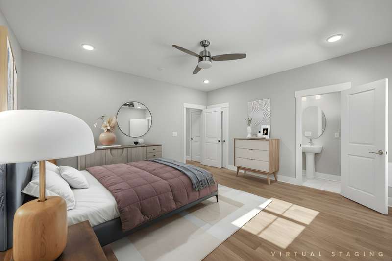 The layout is both spacious and versatile. Upon entry, you're welcomed by a bright foyer and a flexible main-level room with a full bath--perfect as a 4th bedroom, home office, guest suite, or gym. Just off this space is a covered, fenced-in patio ideal for morning coffee or afternoon unwinding.