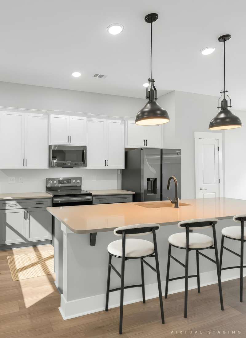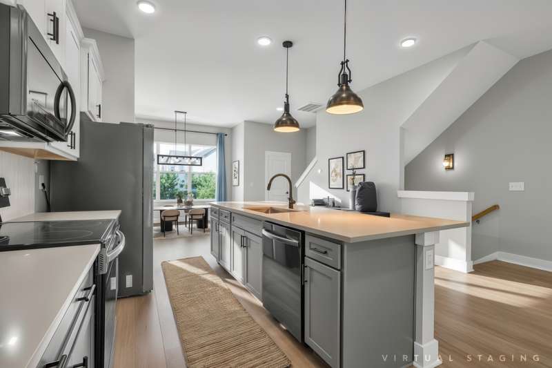 Upstairs, the open-concept main floor features a large kitchen island, dedicated dining area, and a bright, airy living room that opens to a private screened-in deck--seamlessly blending indoor and outdoor living. This is also the only unit in the development with sleek black stainless steel appliances (refrigerator, washer & dryer included!) - offering both function and style.