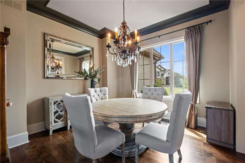 Welcome to this stunning Mills Farm residence where thoughtful design and luxurious finishes shine throughout. Step inside to a light-filled great room that opens to the gourmet kitchen, complete with stainless steel appliances, a walk-in pantry, and a casual dining area overlooking the backyard. From here, step out to the covered lanai, perfect for indoor-outdoor living. A formal dining room offers space for special occasions, while a main-level office with lanai access provides the ideal work-from-home retreat.The luxurious primary suite is a true retreat, boasting a spa-like bath and generous walk-in closet. Upstairs, youll find three spacious bedrooms, each with its own en suite bath, a conveniently located laundry room, and a versatile loft.The finished lower level is designed for both entertaining and relaxation, featuring a see-through fireplace, bar, wine cellar, fitness room, hobby space, rec area, and a non-conforming bedroom and full bath.Set on a serene, fenced lot in one of Overland Parks most desirable communities, this home blends elegance, comfort, and functionality at every turn.
