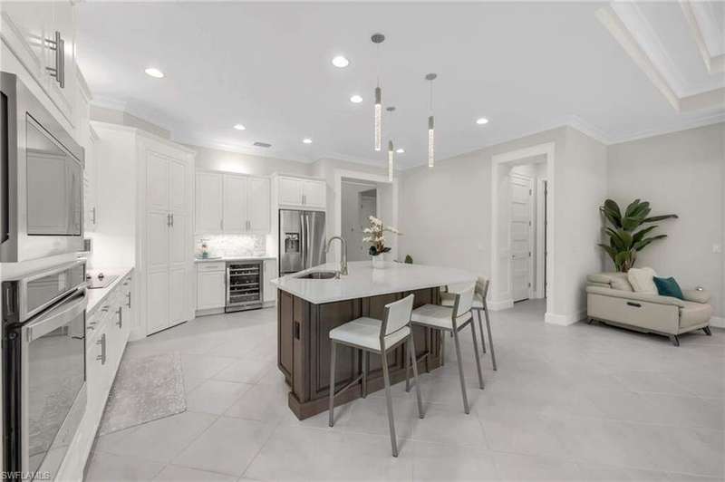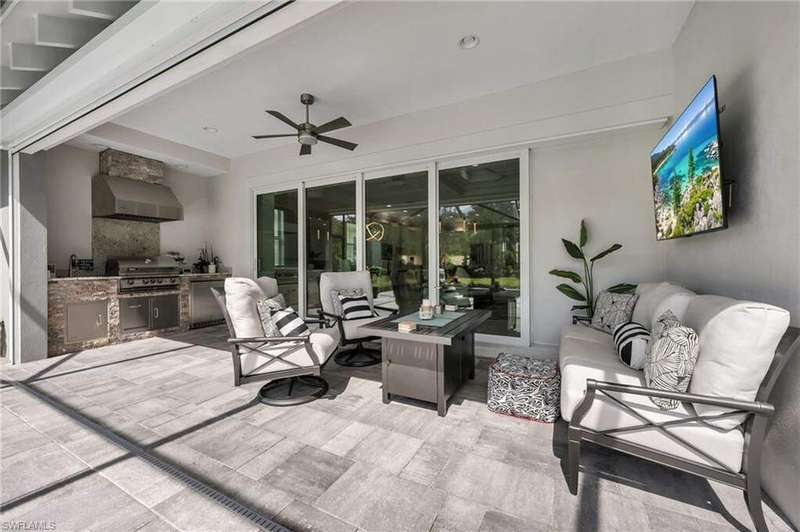 One-of-a-kind Wisteria model on a rare oversized preserve lot backing to the scenic Cypress Waterway Preserve and trail in The Isles of Collier Preserve. This meticulously maintained 3 Bedroom + Den, 2.5 Bath, 2-Car Garage home (built 2021) offers exceptional privacy-no homes in front or behind-with long lake views across the street. The lot is 242 feet long which provides a quiet and tranquil space. Features include a whole-house Generac generator, Storm Smart hurricane shutters, custom landscaping, two story foyer and motorized garage storage lift. Inside, enjoy porcelain tile flooring throughout, soaring ceilings, crown molding, quartz countertops, and custom built-ins. There is a custom built-in wall unit in the family room with a 75-inch TV and trim treatment. Both walk-in closets have custom closet treatments. The light-filled open plan flows seamlessly to your saltwater pool, spa, and summer kitchen overlooking the tranquil preserve. Flood Zone X (no flood insurance required) with assumable flood policy. Residents of The Isles of Collier Preserve enjoy resort-style amenities including a beautiful clubhouse, state-of-the-art fitness center, resort & lap pools, 14 pickleball courts, 6 tennis courts, bocce ball, a dog park, and the popular Overlook Bar & Grill. Nestled within a protected nature preserve, the community features over 8 miles of scenic walking/biking trails and navigable waterways for kayaking and paddleboarding. Just minutes from downtown Naples, world-renowned beaches, fine dining, the Naples Botanical Garden, Hamilton Harbor Yacht Club, and the Bayshore Arts District, this location truly has it all. Naples was recently named the #1 Best Place to Live in the U.S. for 2024 by U.S. News & World Report-and this home is your opportunity to experience why.