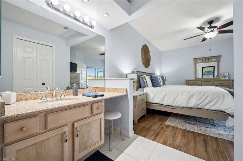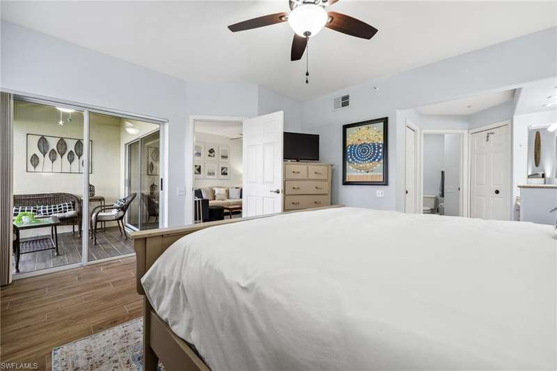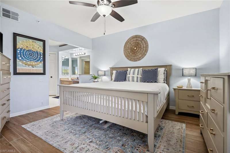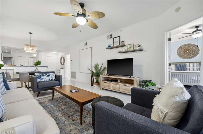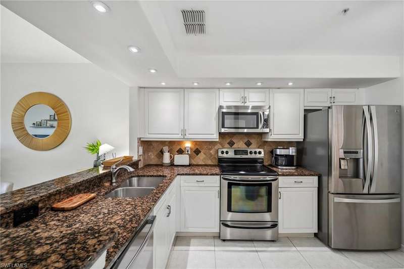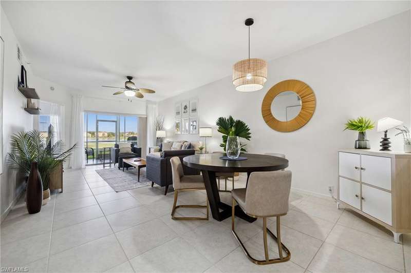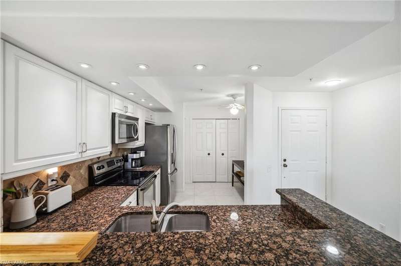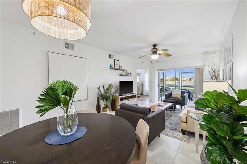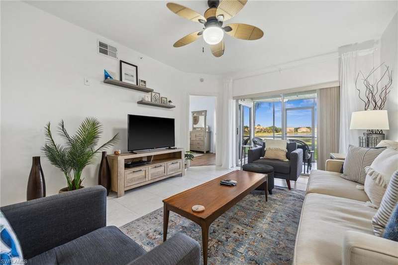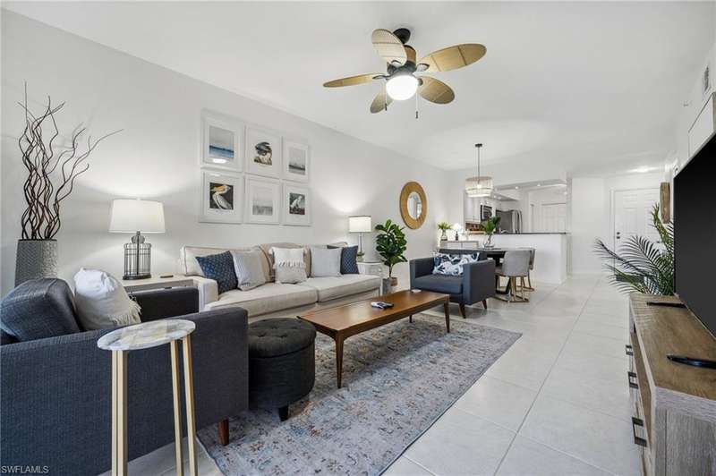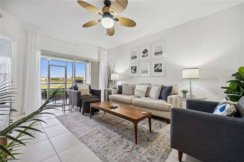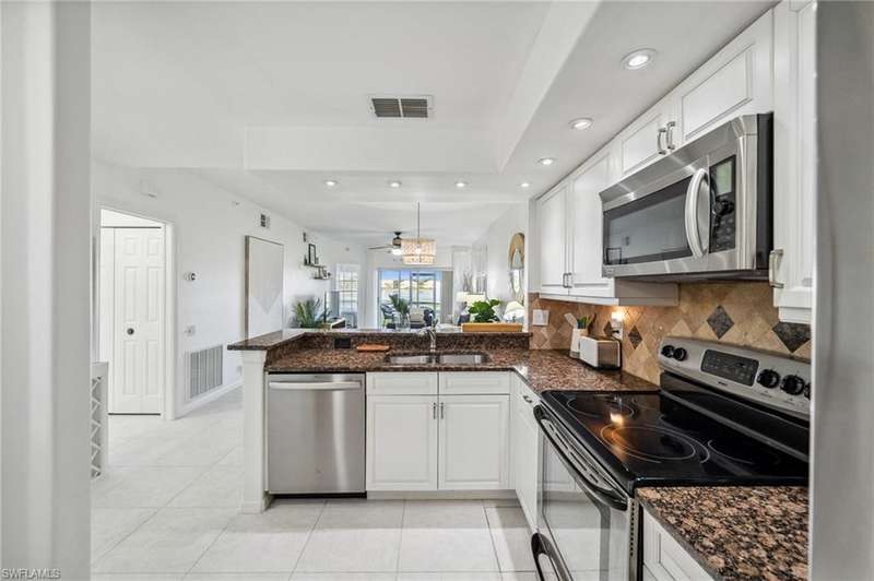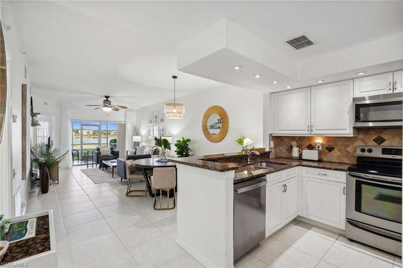 Step into effortless Florida living with this beautifully maintained, TURNKEY 2-bedroom, 2-bathroom first-floor unit in the sought-after Cavendish Court at Worthington. Offering 1,076 square feet of thoughtfully designed space, this home is the perfect combination of comfort, convenience, and coastal elegance. From the moment you enter, you'll appreciate the open floor plan and screened entry, ideal for embracing the indoor-outdoor lifestyle. The gourmet kitchen is a standout feature, boasting stainless steel appliances, a brand-new dishwasher, upgraded countertops, and a stylish backsplash. With a seamless connection to the living and dining areas, it s perfect for hosting guests or enjoying quiet evenings at home. Throughout the home, tile flooring and ceiling fans provide a cool, low-maintenance environment, while the spacious primary bedroom offers a true retreat. Sliding doors open to a screened-in lanai, where you ll be greeted by tranquil lake and golf course views. The en-sui
