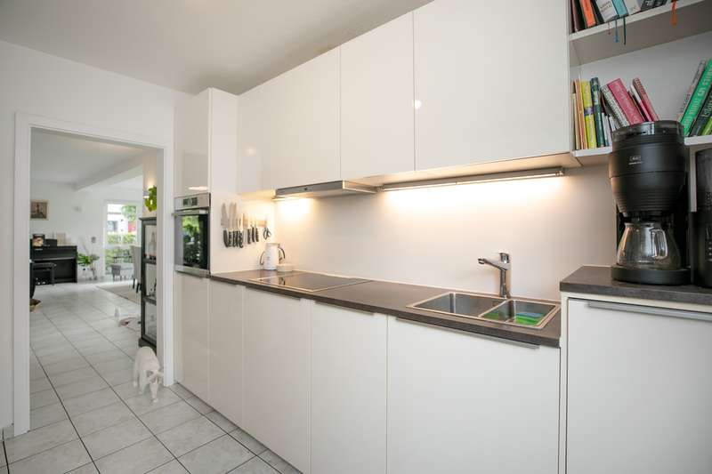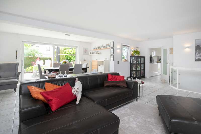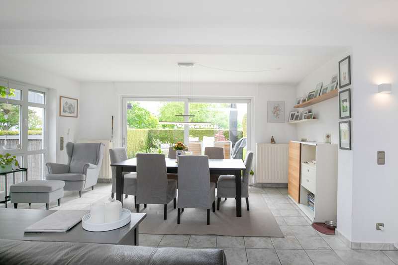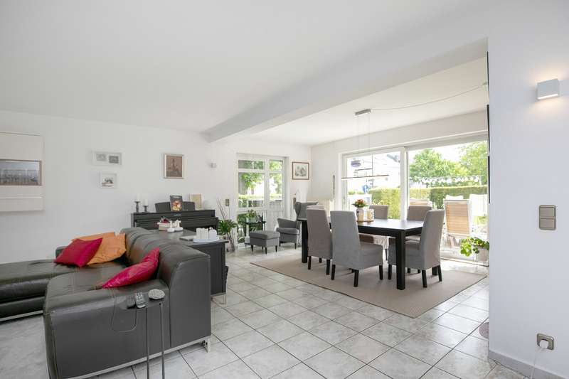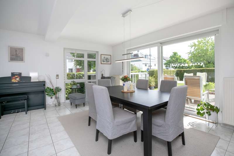 This individual first floor apartment is located in a well-kept residential complex (built in '94) in a popular location in Offenbach/Bürgel. With 4.5 rooms on the first floor and 2 rooms in the basement on a living space of approx. 168m², it offers a comfortable home for a discerning couple or family and is also ideal for living models such as working and living under one roof. Particularly noteworthy is the private garden use with landscaped garden, 2 terraces (one of which is partially covered) and an idyllic outdoor seating area. The living/dining area with access to the outside area offers an ideal communication center for guests and family. The modern interior design with generous window areas puts the property in the right light. The kitchen is already equipped with a high-quality fitted kitchen and offers access to the second terrace. The amenities include underfloor heating and partial electric shutters. The first floor has a guest WC and a daylight bathroom with bathtub and separate shower cubicle. On top of this, there are 2 further rooms in the basement, which are ideal for guests, hobbies or a home office. An additional daylight shower room in this area ensures functionality and comfort for guests, children or working from home. The property presents a well-kept condition and has been continuously maintained. The location of the property provides good access to public transport and important amenities such as schools, shops and doctors' surgeries, restaurants and cafés. In addition, the proximity to the Main offers many leisure and recreational opportunities.