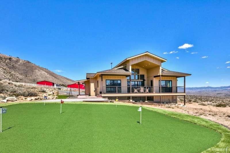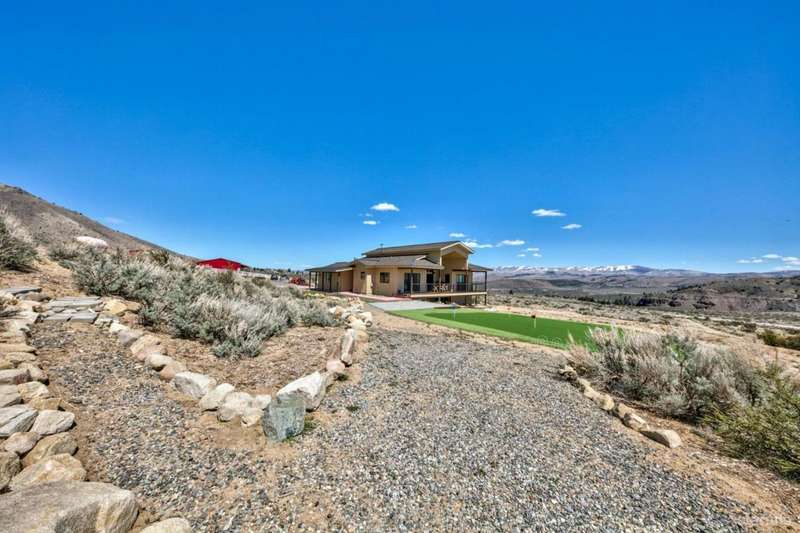 This stunning newly built home sells furnished with 10.08 private acres, is a must-see! Enjoy breathtaking views of the surrounding mountains and valley from every angle. This 1,498 sq ft gem features a luxurious primary bedroom suite with a jetted tub and a relaxing steam shower. The second bedroom suite is beautifully done with large guest bathroom. The third room is an office with outstanding valley views.The 457 sq. ft. heated two-car garage comes plumbed with a Tesla charging station, perfect for modern living. Step outside to your personal putting green with low-maintenance artificial turf ideal for sharpening your game before a big day on the course.For added versatility, the property includes a massive 3200 sq.ft metal garage with its own bathroom, offering endless possibilities as a workshop, studio, or storage for recreational gear.If you're seeking peace, privacy, and panoramic views, this exceptional property could be your perfect escape. Fire sprinkler system installed inside of the house the siding is also fire resistant. There are solar panals installed and the house is plumbed for an air conditioning and Generac.