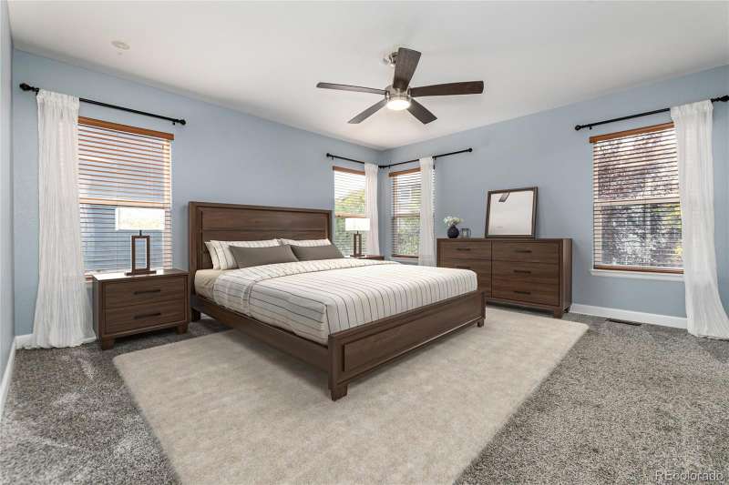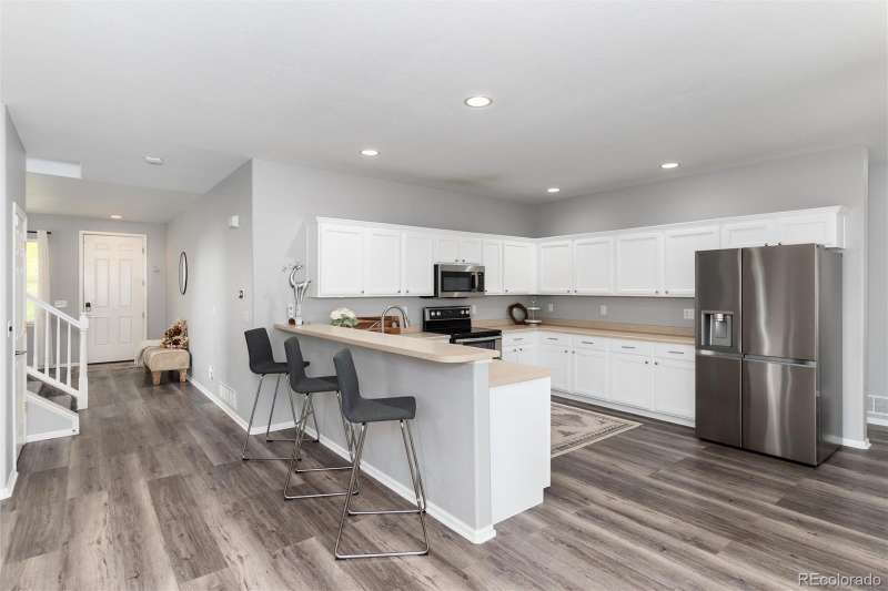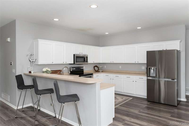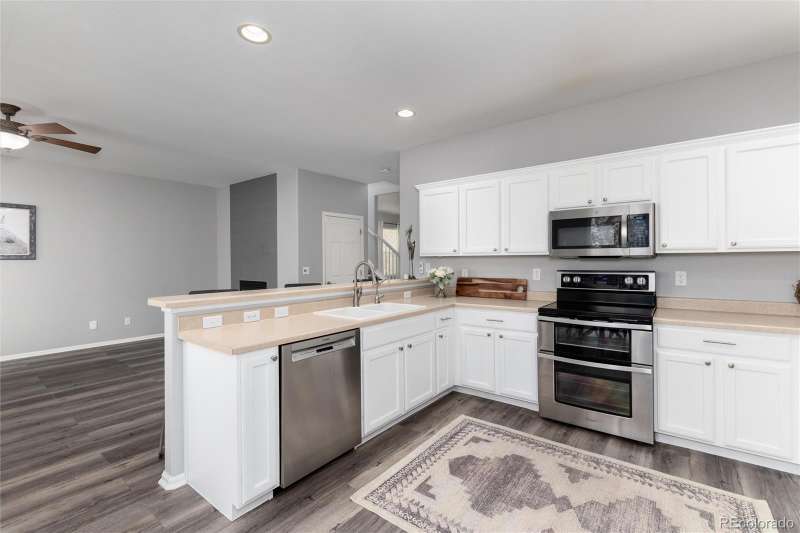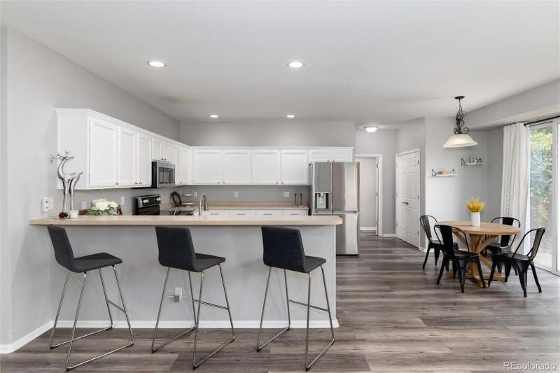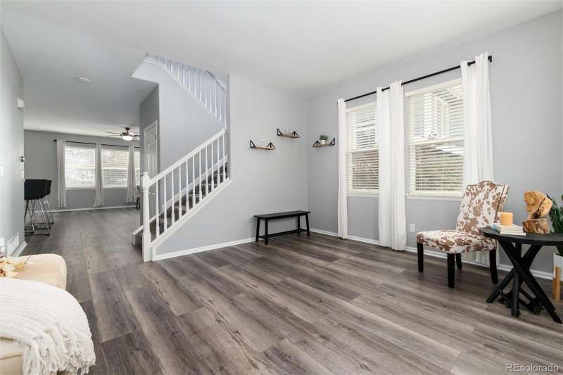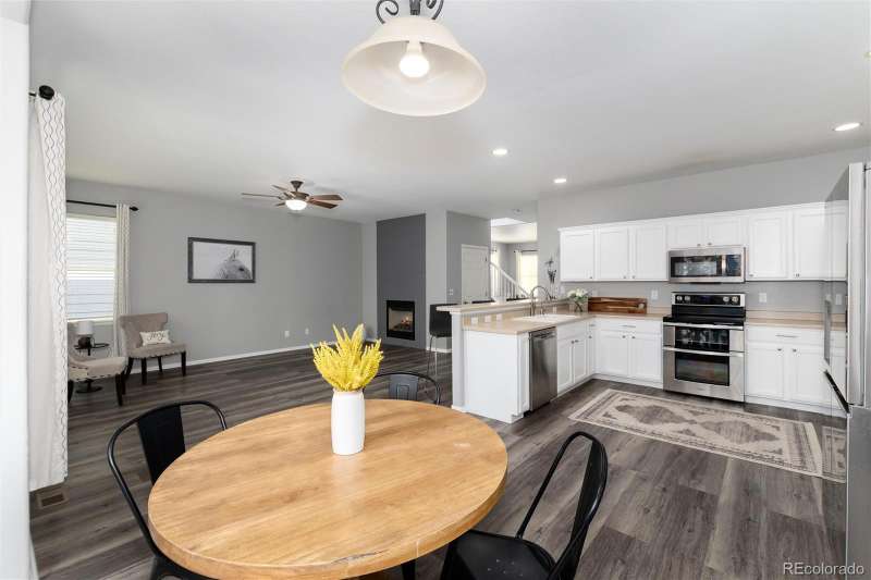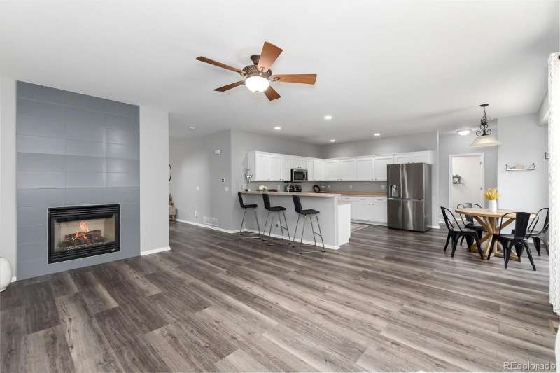 Welcome to your modern, energy-efficient retreat in the highly sought-after Wildcat Ridge neighborhood of Lone Tree! This 4-bedroom, 3-bathroom home offers over 2,100 sq. ft. of beautifully designed living space featuring luxury vinyl wide plank flooring, a cozy gas fireplace, and a spacious kitchen with brand-new stainless steel appliances. Loft conversion to 4th bedroom completed in 2023. Enjoy peace of mind and savings with fully owned solar panels, enhancing both comfort and sustainability. The upper level includes all four bedrooms, highlighted by a primary suite with a five-piece bath and walk-in closet. Additional features include a laundry room with extra storage, fenced backyard, and covered front porch for outdoor enjoyment. Ideally located near parks, trails, shopping, dining, and top-rated schools, this home combines style, efficiency, and convenience in one of Lone Tree's premier communities.