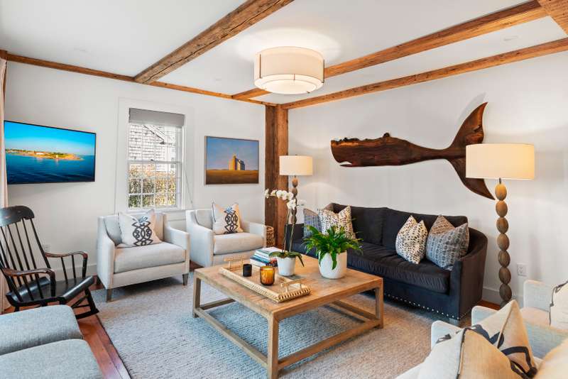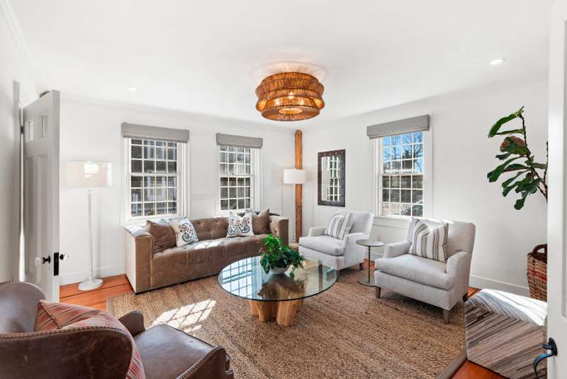 One Chester Street is an exceptional residence that perfectly blends historic charm with modern luxury. Situated at the edge of Nantucket's historic district where the Cliff area meets Brant Point, this home offers a prime location that provides easy access to the best of island living. This 18th-century ship captain s home has been meticulously restored, preserving its original details, including five working fireplaces, while integrating contemporary amenities for today's lifestyle. Sold fully furnished with interior design by The Nantucket Looms, the home boasts four levels of living space, with six bedrooms and five and a half baths, it comfortably accommodates large groups, offering ample room for relaxation and privacy. The spacious open kitchen features the original 6' walk-in fireplace, breakfast area, adjoining a bright family/TV room that opens directly onto the rear deck, patio, and garden. The formal dining room features a beautiful lacquered finish. The outdoor space is eq