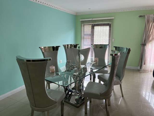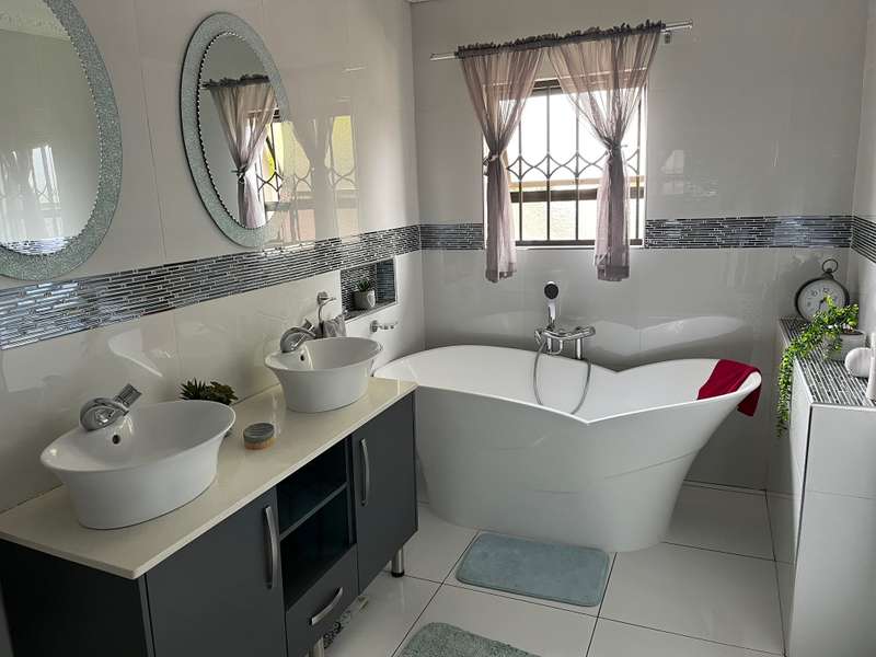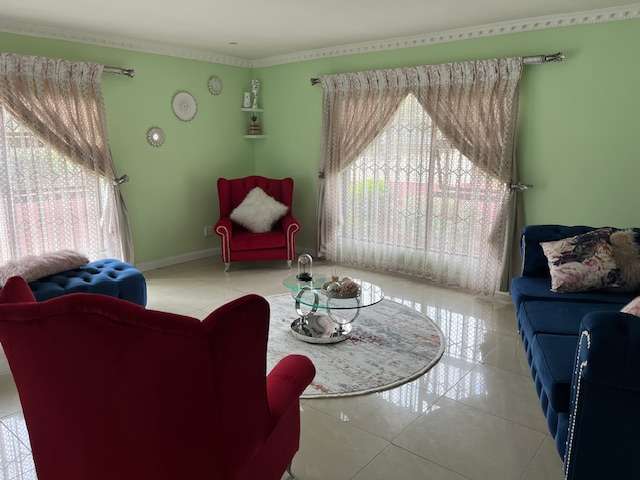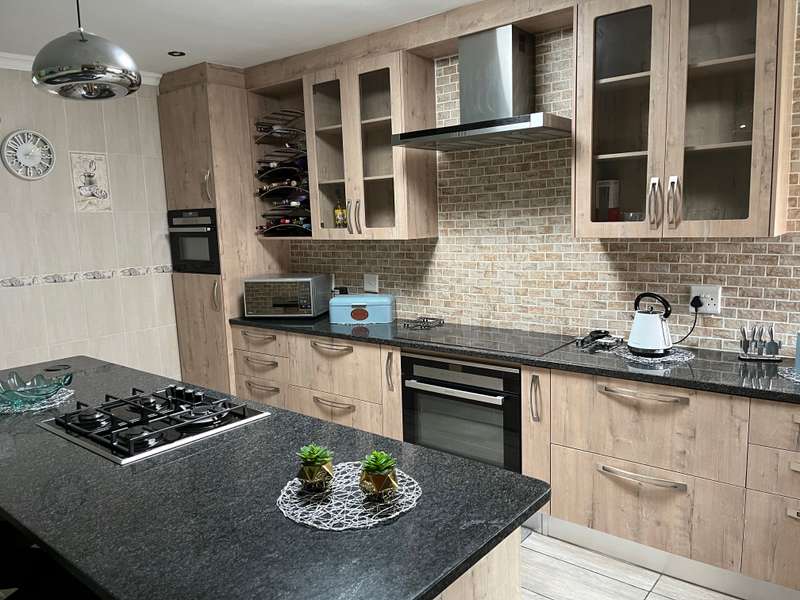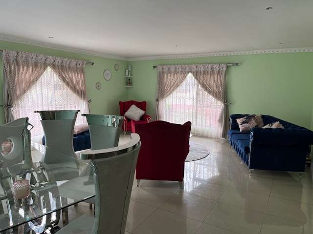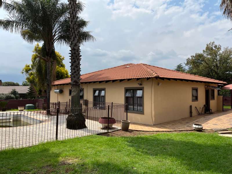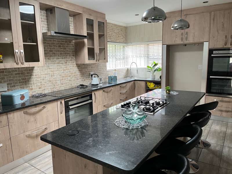This magnificent home is perfect for the big family. There is an open plan family room and Gourmet ktichen with gas plates. Entrance hall leading to on your right to a massive dining room and lounge. Main bedroom is spacious with walk in dressing room and superb bathroom. There are another 3 bedrooms with one more bathroom. There is a study. Guest loo Double garage and one carport. Lovely, enclosed back garden with a pool. Staff room and bathroom