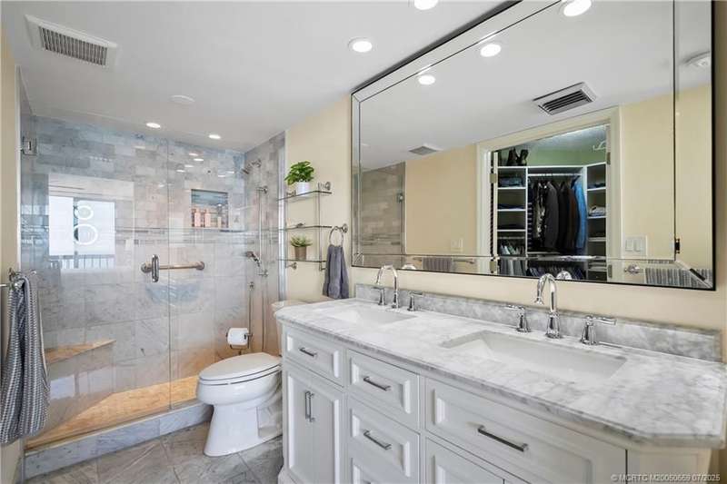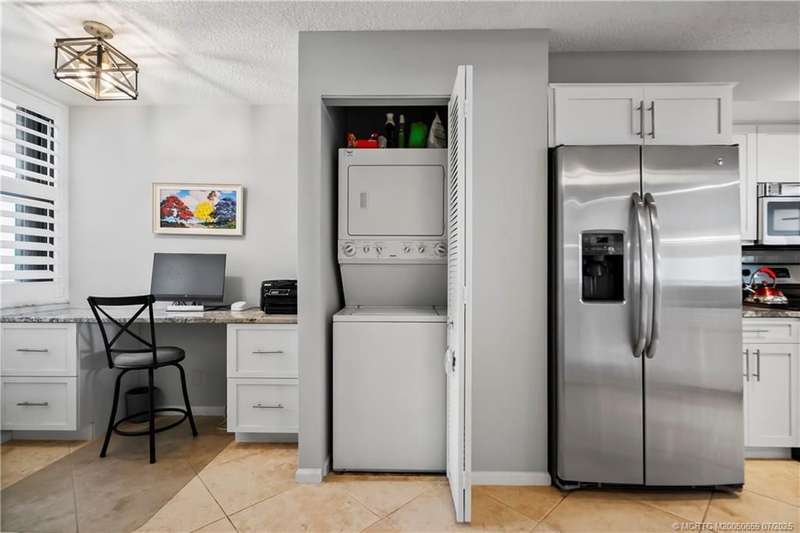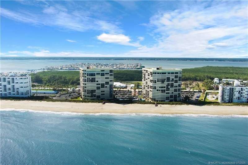 Oceanfr?nt Lu??ury L??v??ng ??n ???n??en Beach. Enjo?? bre?thtaking views of the Atlantic Ocean and Intercoastal Waterway from this stunning beachfront condo. Fully renovated 2-bedroom, 2-bathroom condo has a gourmet kitchen equipped with stainless steel appliances, quartzite countertops, stackable washer/dryer, and a convenient office nook. The luxurious Owner's Suite boasts an all-marble bathroom with dual sinks, a large walk-in shower, and an expansive custom walk-in closet. Islandia II offers resort-style amenities including: guard-gated access, two heated pools, a hot tub, fitness center with sauna, lighted tennis and pickleball courts, bocce courts, and a billiards room, a community room with a full kitchen, dedicated pet off-leash area, RV/trailer parking, and a car wash station. The building has completed the milestone report along with concrete and structural inspections. Located on Hutchinson Island near Downtown Jensen, Downtown Stuart, great local restaurants & shopping.