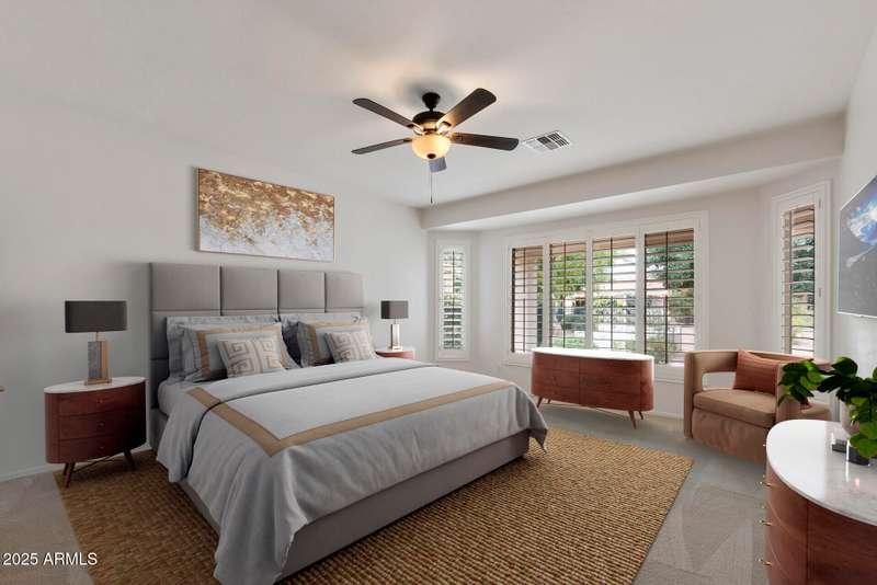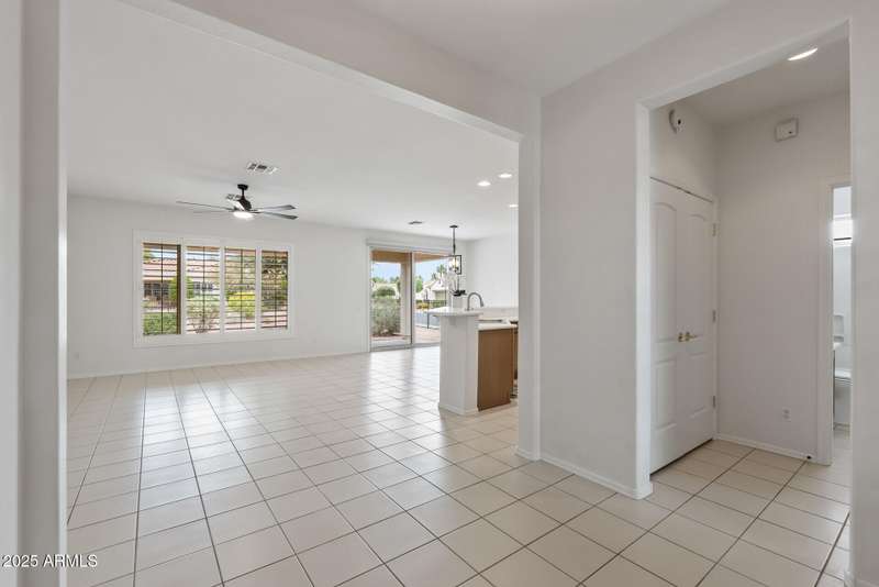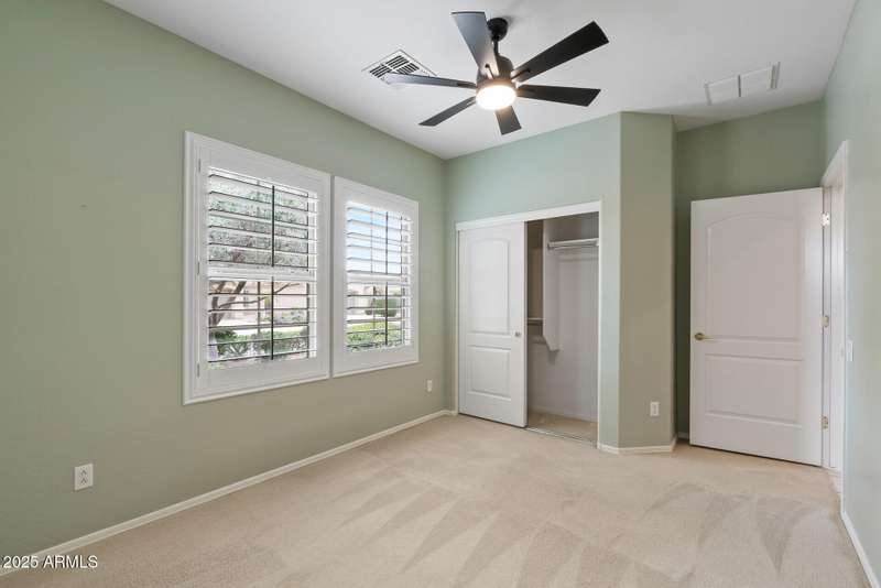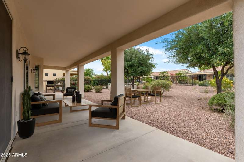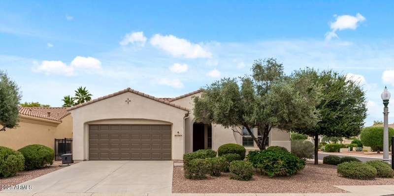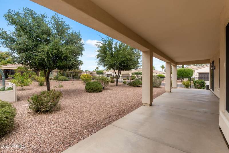 SENSATIONAL VALUE! This well maintained, super clean Montecito sits on an 8418 sq ft. Pool-Sized Corner Lot! GREAT LOCATION- just a couple of blocks from the rec center, pool/spa, restaurant, green belts, pickleball, walking trails & golf course. New roof underlayment in 2023 with two layers of 40lb sheeting. Ideal floor plan with split bedrooms, open kitchen to the dining & living area and EXTENDED BACK PATIO that runs the full width of the house. The deep backyard is completely fenced, perfect for dogs or a pool. The kitchen is open and bright with stainless steel appliance, Corian counter tops and eat up space at the counter. The primary bedroom is spacious with a pop-out bay window. The ensuite bath has dual sinks, clerestory windows, a walk in shower and a roomy walk-in closet.