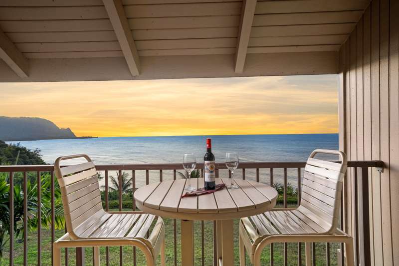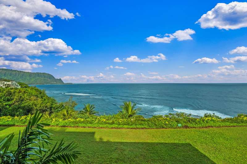 Perched on the ocean bluff, this top-floor, 2 bedroom, 2 bath condominium enjoys breathtaking views of the Pacific, glowing sunsets, breaking surf, and the iconic peak of Mt. Makana (aka "Bali Hai").