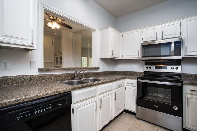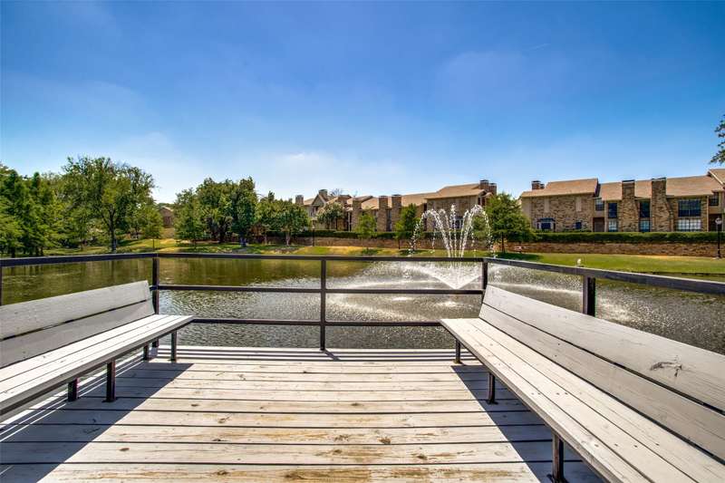 Beautiful Condo for Lease with Gorgeous lake views in Great location! This first floor corner unit is very rare! Conveniently located near EVERYTHING! Open and Bright Living Room with wood burning fireplace. Tile flooring in Entry, Living Room, Bathroom, Kitchen and Breakfast Nook. Kitchen fetures plenty of cabinet and countertop space. Almost new stainless steel oven, microwave and refrigerator! Washer and dryer are included. SPACIOUS BEDROOM has two closets. Enjoy the view of the beautiful lake and water fountain from the wall of windows in the Living Room! Relax on your covered back patio with sounds from the peaceful water fountain. This Corner Condo could be your Peaceful Retreat at the end of your busy day! Community pool is just a few feet from your front door!