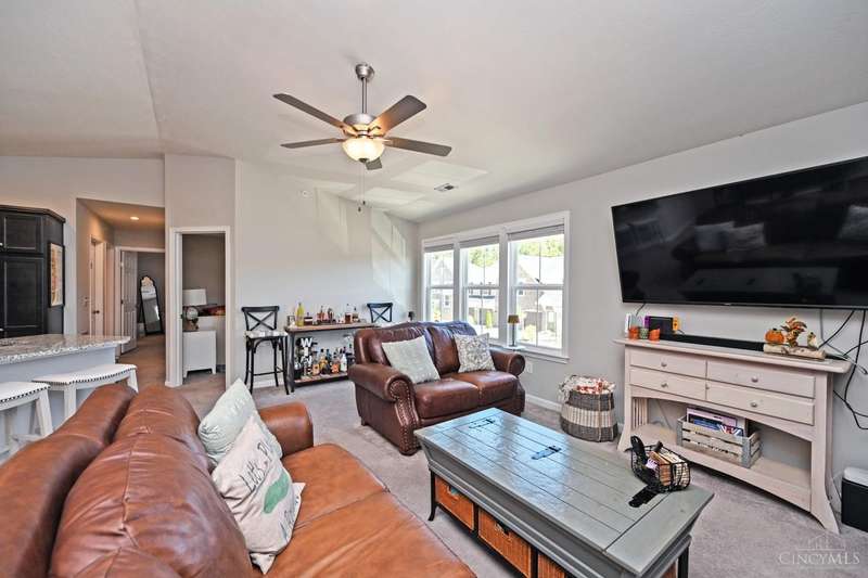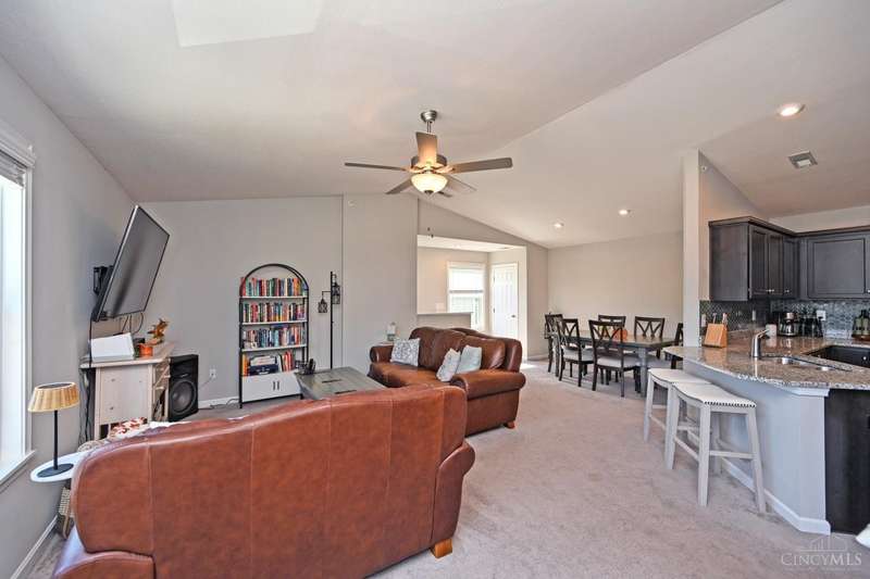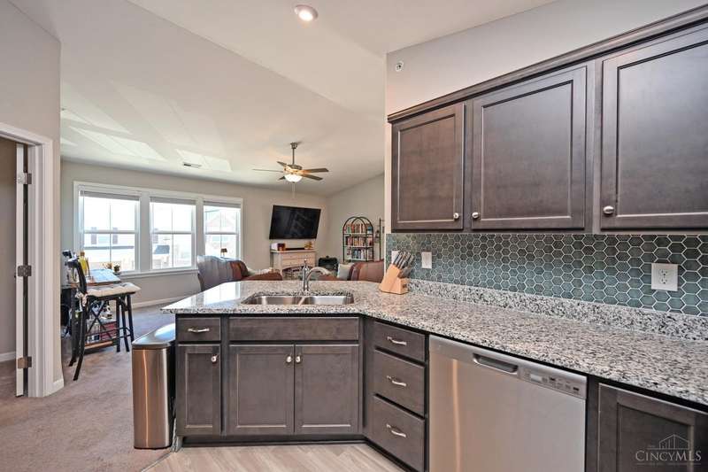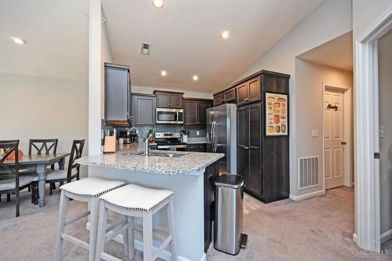 Your chance to buy in the neighborhood at this price. Only 2 years old with a great location near the clubhouse and pool. Easy parking. Low HOA includes clubhouse, pool, exercise facility, trash/sewer, snow removal, and water, plus allows dogs! Primary bedroom is ensuite w/ its own bathroom and walk in closet. Washer & Dryer stay. Kitchen has wood cabinetry w/ granite counters & stylish backsplash! Living room and dining room are open w/ vaulted ceilings. Enjoy no one living above you!
