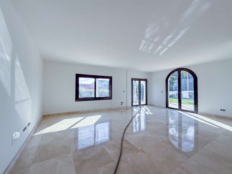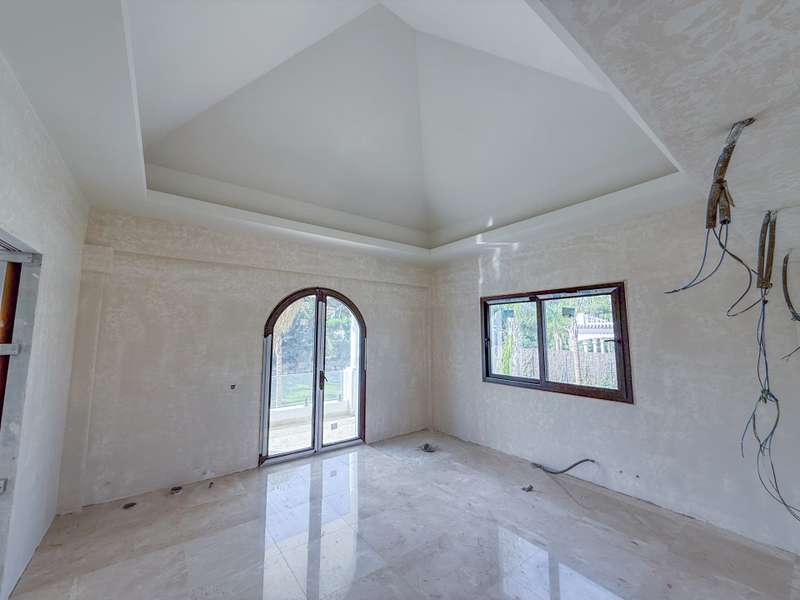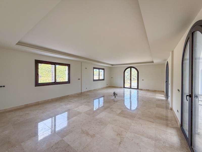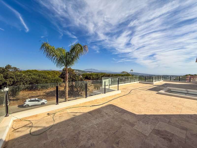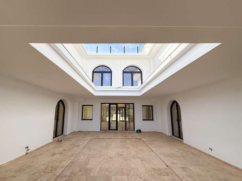 In the heart of Sotogrande Alto, very close to the golf course and the exclusive SO/Sotogrande Hotel, stands this villa that is not just a house, but a way of understanding life. A residence where every detail invites you to enjoy the Mediterranean, privacy, and the leisurely pace that makes Sotogrande a unique place in Europe. From the moment you enter, a bright atrium welcomes you and leads to a 120 m² living room, designed for hosting grand celebrations with friends or simply contemplating the stunning sea and mountain views at sunset. The five bedrooms are true private retreats, with terraces that open to the horizon, while the master suite, crowned by a double-pitched dome, elevates the experience of rest to another level. The lifestyle offered by this villa transcends its 1,100 m² of built space: private gym, cinema room for family movie nights, garage for seven cars, and on the rooftop, a terrace with pre-installation for a jacuzzi where the starry Sotogrande sky becomes the best ceiling in the world. Outside, the jewel is an 80 m² heated saltwater pool with beach-style entry, integrated jacuzzi, and waterfall, perfect for enjoying the Andalusian summer in your own oasis. The villa is practically finished, leaving the final details—kitchen, bathrooms, doors, smart systems, and home automation—to the buyer’s choice. This is a unique opportunity to personalize the most intimate spaces of the house and give them your own touch, while maintaining coherence with impeccable architectural design. Living here means having breakfast facing the sea, playing golf in the morning, sailing in the afternoon, and ending the day among friends at one of the area’s exclusive beach clubs. Sotogrande is sport, nature, gastronomy, but above all, a philosophy of life that combines elegance and freedom. This villa is much more than a property: it is the gateway to an incomparable lifestyle, designed for those who seek the best without giving up tranquility. Contact us for more information.
