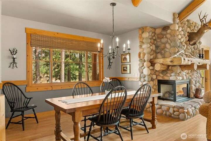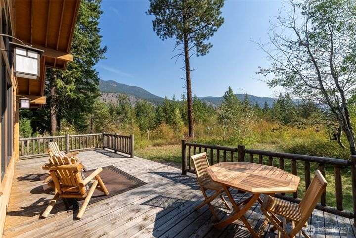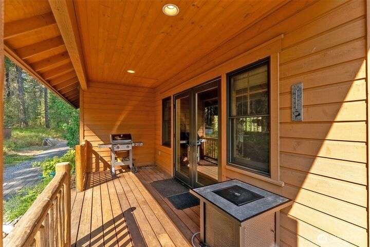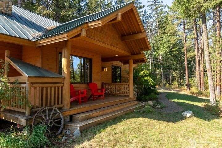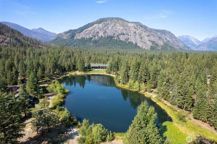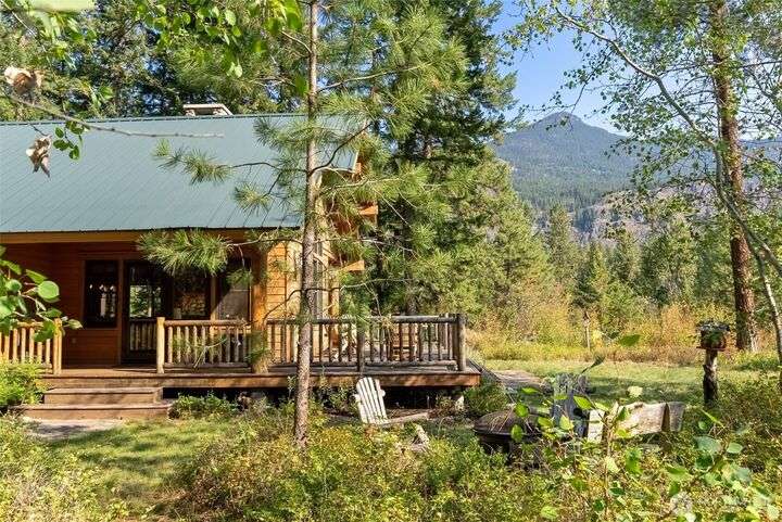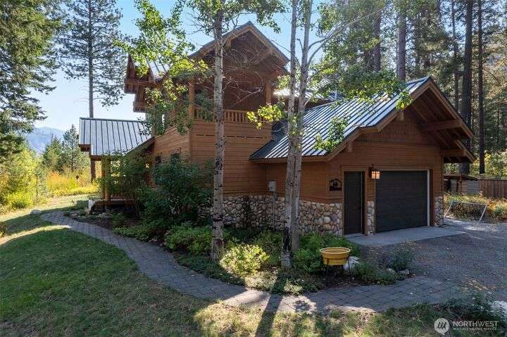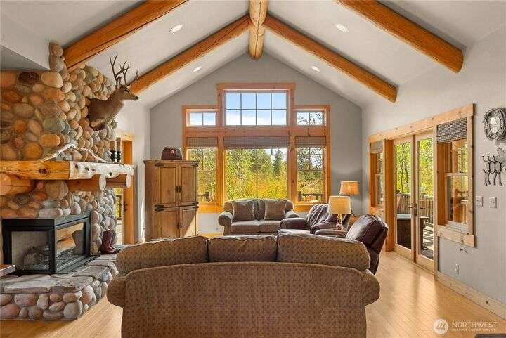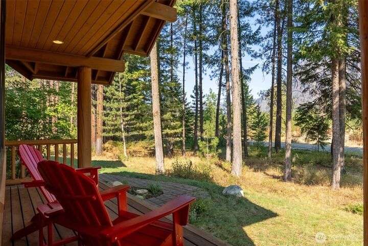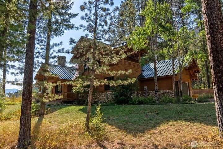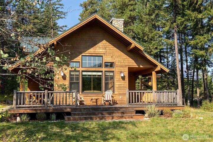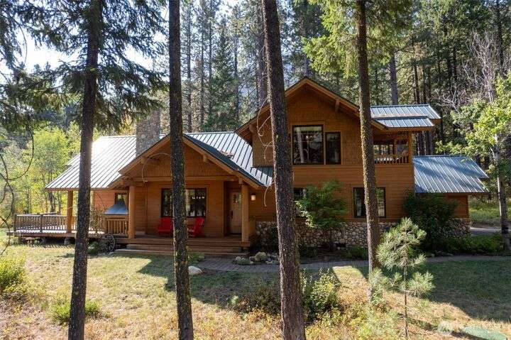 Custom 3BD/2.5 BA home in Mazama’s premier Wilson Ranch, set on 1.09 acres bordering USFS land for privacy and direct trail access. Northwest lodge-style design with vaulted ceilings, warm wood finishes, and abundant windows that frame mountain and forest views. Open living with stone fireplace, spacious kitchen, and seamless indoor-outdoor flow. Primary ensuite upstairs offers private balcony and large bathroom. Community amenities include a 4-acre lake for swimming, fishing, and paddle boarding, plus pool and hot tub. Offered fully furnished, this rare nightly rental–zoned home blends comfort, recreation, and investment potential in the heart of Mazama’s most popular neighborhood.
