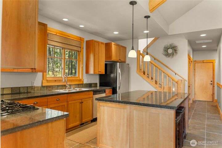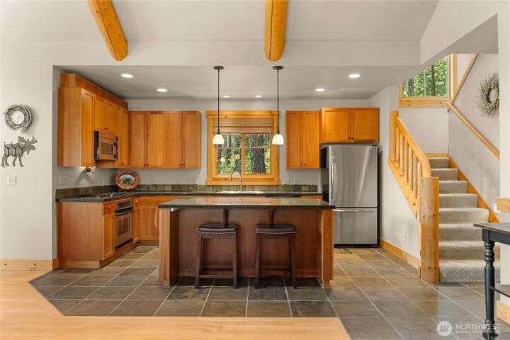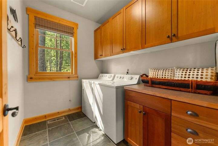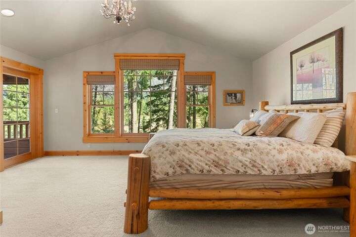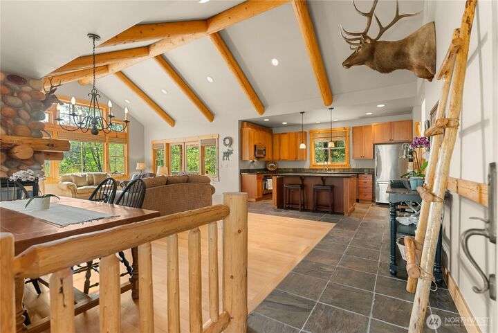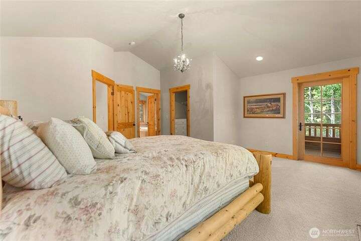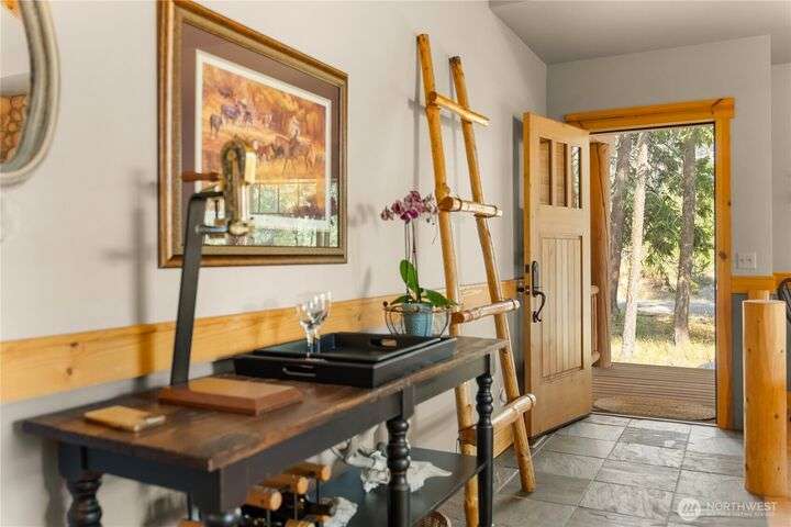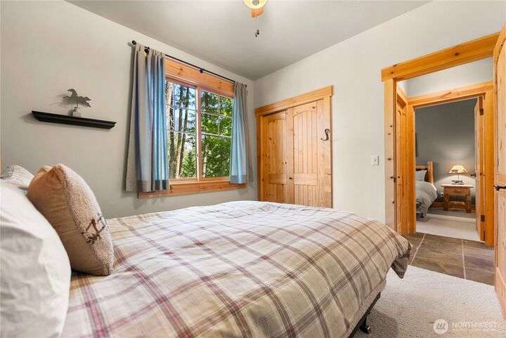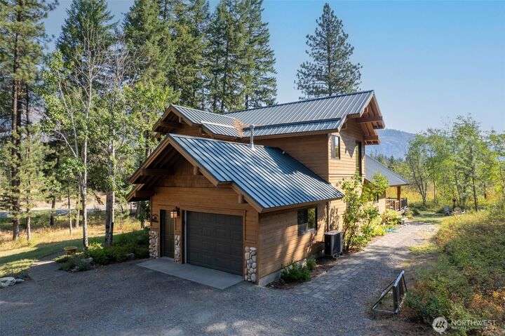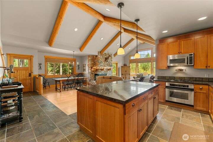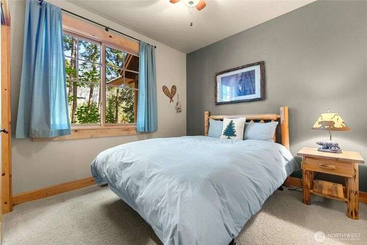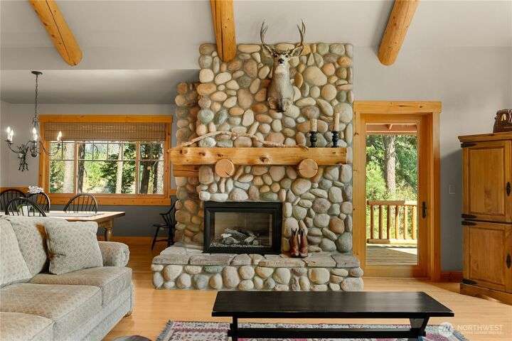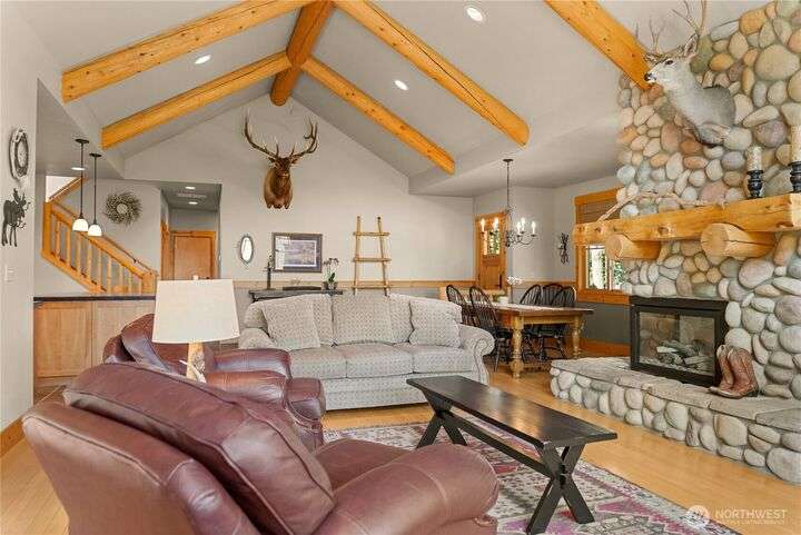 Custom 3BD/2.5 BA home in Mazama’s premier Wilson Ranch, set on 1.09 acres bordering USFS land for privacy and direct trail access. Northwest lodge-style design with vaulted ceilings, warm wood finishes, and abundant windows that frame mountain and forest views. Open living with stone fireplace, spacious kitchen, and seamless indoor-outdoor flow. Primary ensuite upstairs offers private balcony and large bathroom. Community amenities include a 4-acre lake for swimming, fishing, and paddle boarding, plus pool and hot tub. Offered fully furnished, this rare nightly rental–zoned home blends comfort, recreation, and investment potential in the heart of Mazama’s most popular neighborhood.
