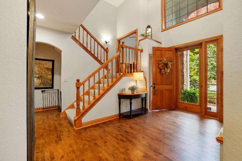 It's only fitting that this home's entrance is so grand--everything behind these doors is just as spectacular. From the moment you step inside, you're greeted by soaring ceilings, stunning stonework & an aura of architectural elegance that sets the tone for the rest of the home. The kitchen, designed for both passionate chefs & seasoned entertainers, features double granite islands opening to sun filled living areas--ideal for gourmet creations, gatherings & unforgettable moments. Enjoy a bright sunroom, impressive formal dining, and the promise of unforgettable moments every day. Modern solar panels & EV charger add smart efficiency to an exquisite living experience.