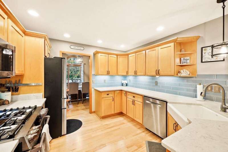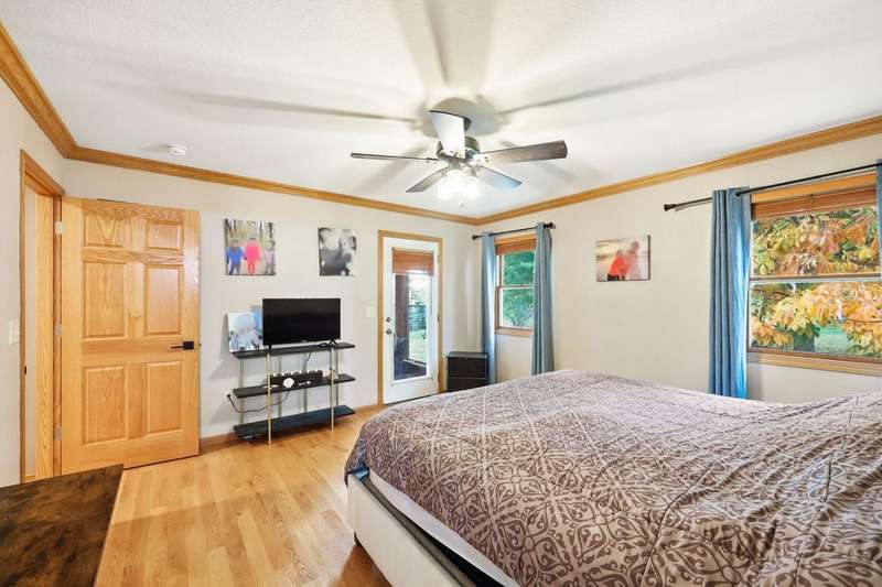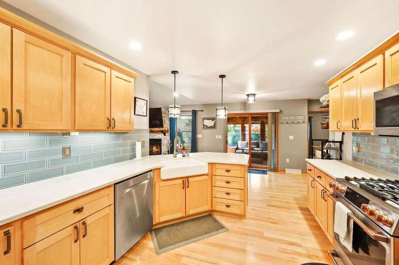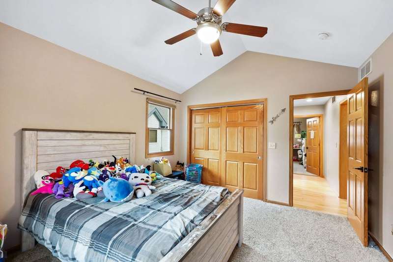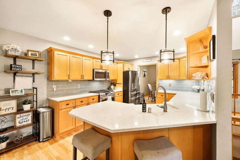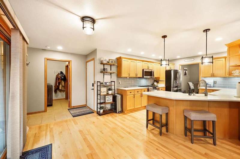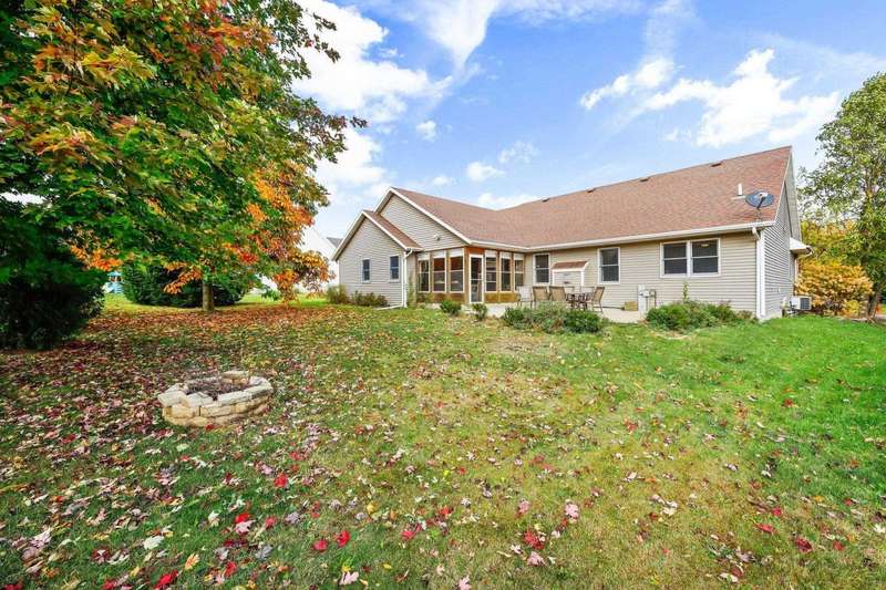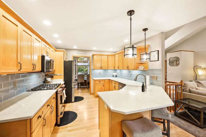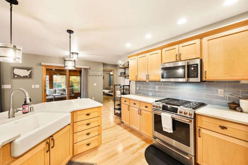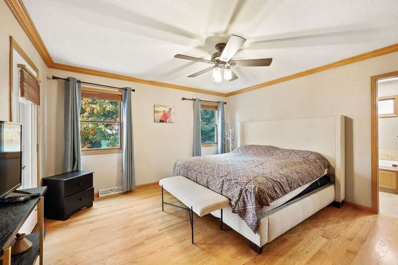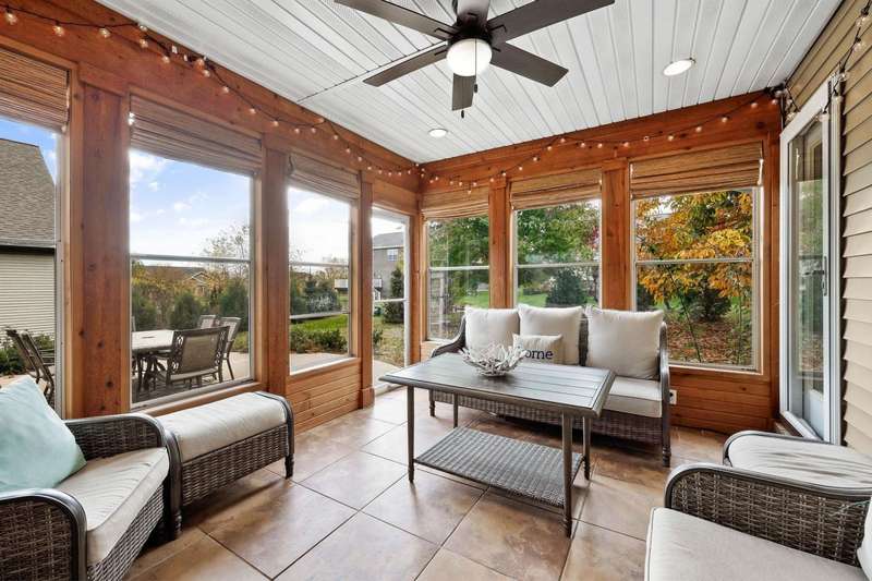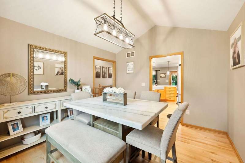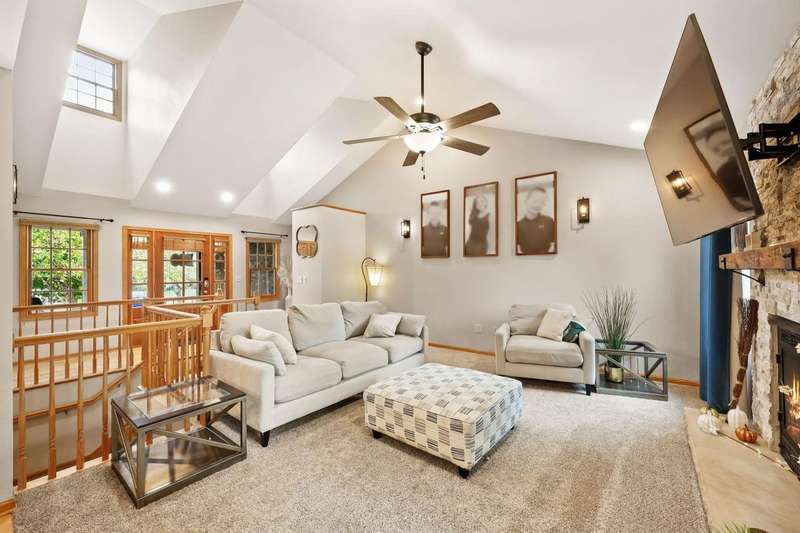 Step inside this beautifully updated 4 bedroom, 3 bath home in the heart of Cambridge! Features include vaulted ceilings, hardwood floors, 3 season sunroom and a cozy gas fireplace. The spacious primary suite offers a walk in closet, plenty of windows, access to the 3 season sunroom and a roomy jetted tub with separate shower. Then, the lower level includes a built in wet bar, full bath, a huge 4th bedroom and tons of storage space! Enjoy the back patio with a large yard - room for everyone to have fun, 3 car garage, and walking distance to the elementary school!
