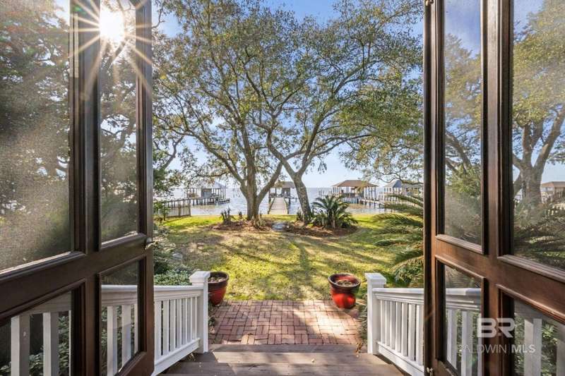 Bayfront Estate-14629 Scenic Hwy 98, Fairhope, AL $4,495,000 | 5,252 sq ft | 4 BR | 5.5 BA | 75 ft Waterfront/75x275IRR Stunning 3BR/4.5BA main house + 1BR/1BA guest house with panoramic Mobile Bay views. Gourmet kitchen, wet bar, enclosed porch with hurricane windows, Brazilian cherry & seagrass floors. Master suite with dual baths and walk-in closets Guest house: Full bath, laundry, Covered 2-car parking; connected by covered walkway to the main house Waterfront amenities: Private boathouse (kitchen/TV), deep-water dock, boat/jet ski/kayak lifts. Extras: RV pad, encapsulated crawl space (2022), seller financing available (below-market rate), turnkey furnished option. Lakewood Golf Club/Grand Hotel access by membership. Buyer to verify all information during due diligence.